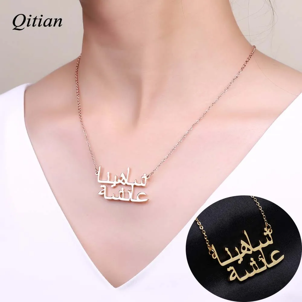 Двойное ожерелье с арабским именем, золотая цепочка из нержавеющей стали с подвеской, ожерелье с именной табличкой, арабские ожерелья для женщин, ювелирные изделия, чокер