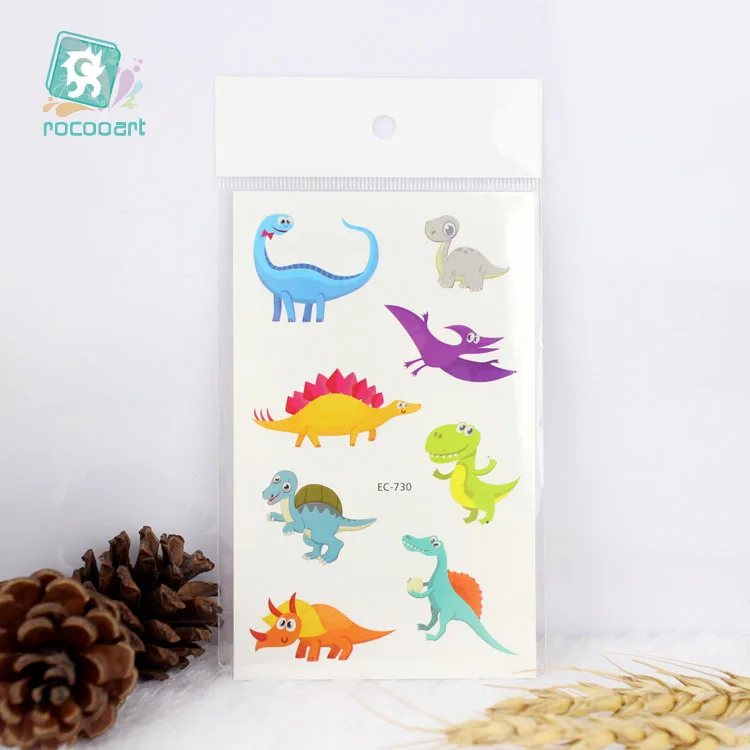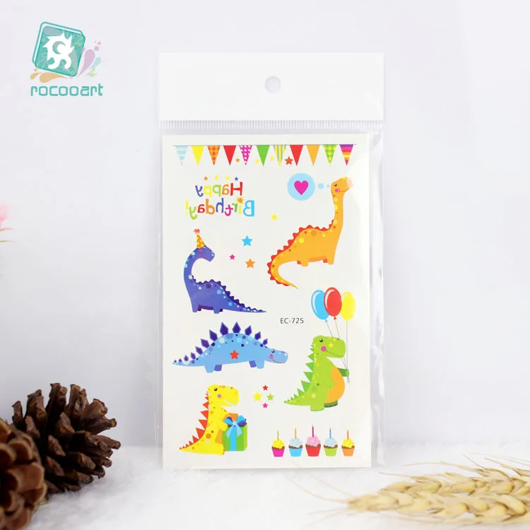 Rocooart динозавров наклейки для временных татуировок для детей на день рождения, подарок штаны с фальш-вставкой; Tatuajes боди-арт Водонепроницаемый Taty временная татуировка