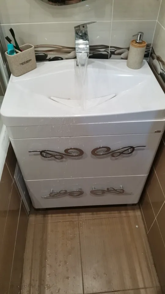 Кран шумный. Раковина у меня более плоская, хоть и 80см но при открывании на всю вода летит на штаны, делаешь напор слабее - шумит нереально. Заказывал у продавца кран 2 года назад, сгнил шарнир у ручки, ответ по браку ждал месяц, предложили за 8$ выслать другую ручку открывания крана (хотя кран не разборный), не стал рисковать и попросил скидку на новый кран, в итоге скидка составила 2$ воообщем "очень клиентоориентированный магазин" Прикладываю фото с данным краном от которого одни брызги и фото прошлого крана с браком. Надеюсь модель с браком снимут с производства или хотя бы кто-то задумается из каких материалов он сделан) корпус тяжёлый и целый, но что от него толку, когда сгнил шарнир