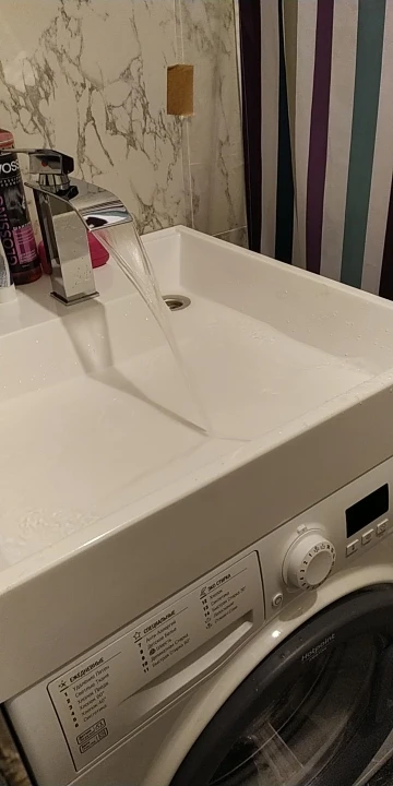 Доставка 2 недели. Очень-очень-очень шумный!!! На шланге холодной воды резьба не до конца нанесена. Он просто огроменный, каким не выглядит на фото. Но все равно самый главный минус - это шум, даже при минимальном напоре воды...