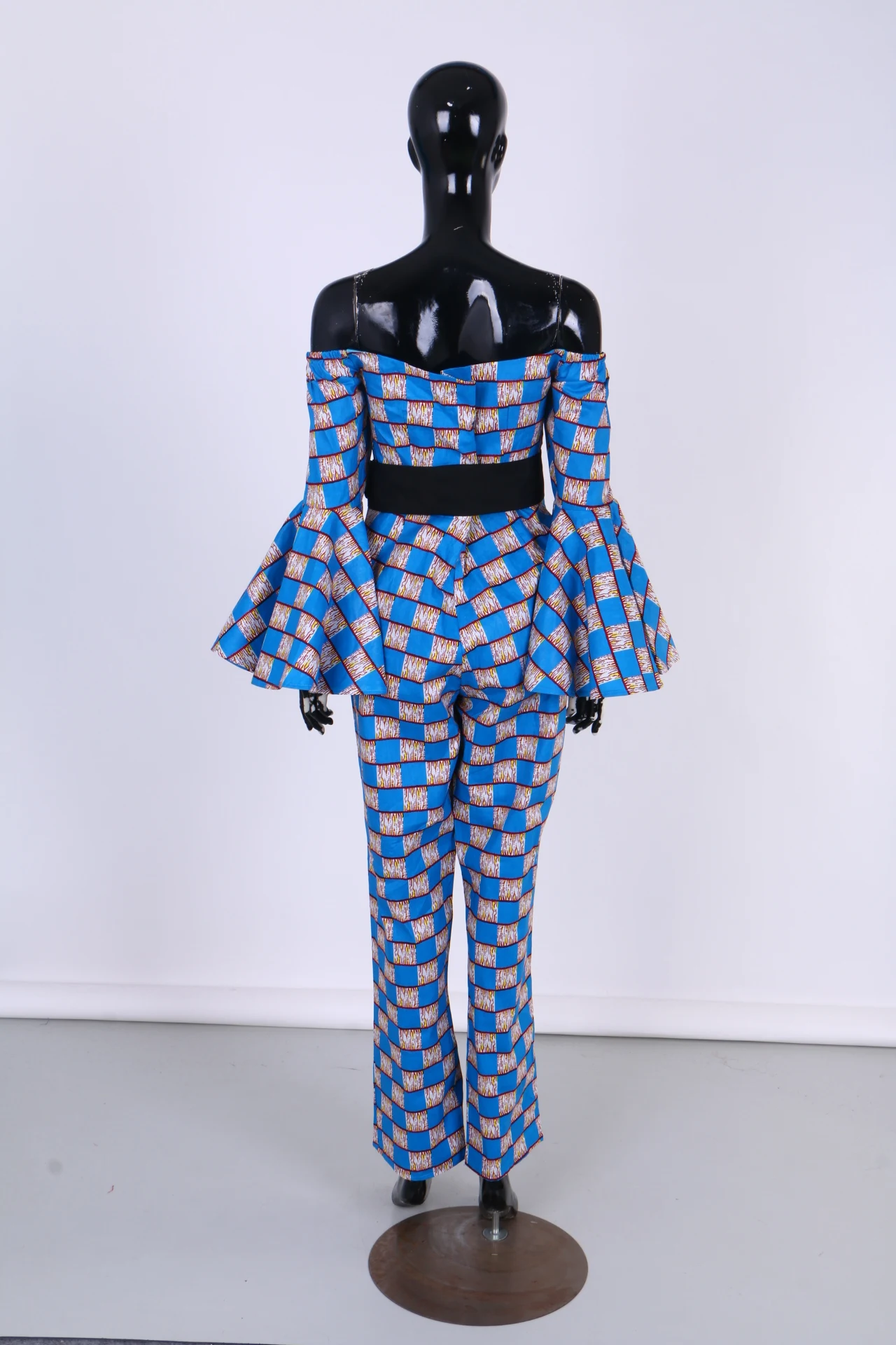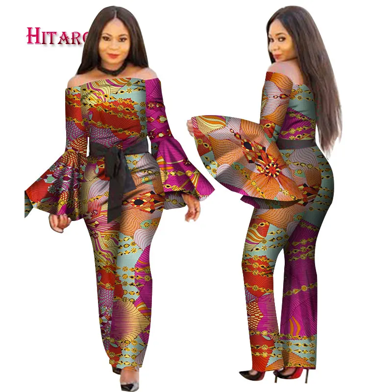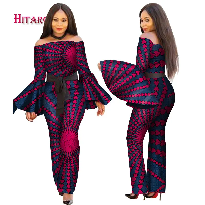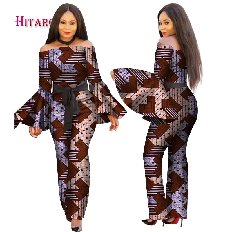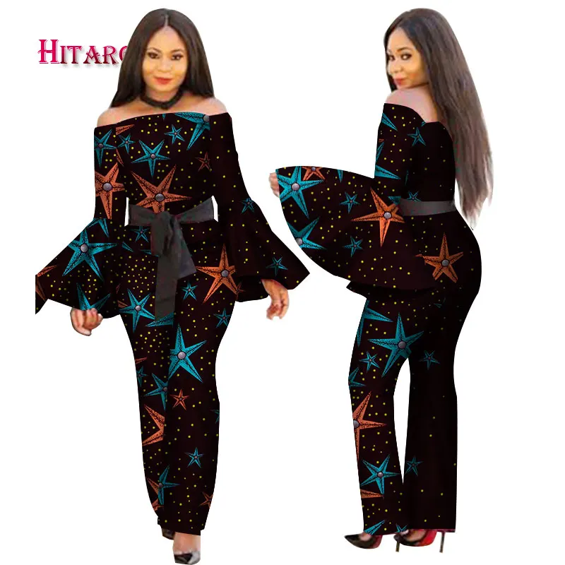 Женский комбинезон с принтом в африканском стиле, с вырезом лодочкой и длинными рукавами-фонариками, сексуальный комбинезон с широкими штанинами, комбинезоны в африканском стиле WY2634