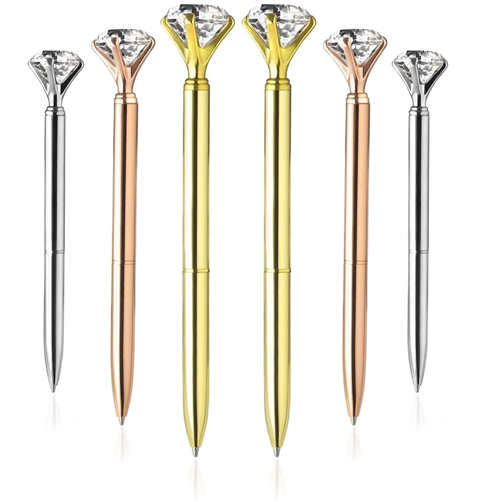 10 шт.лот большая металлическая шариковая ручка с кристаллами и бриллиантами кольцо свадебный подарок для офиса Шариковая ручка Черные синие чернила розовое золото
