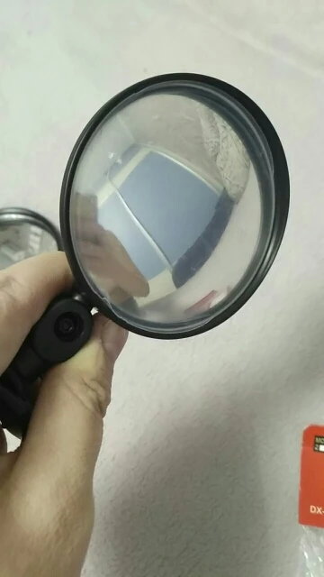 зеркало пластиковое, выпуклое, в нем неплохо видно. Пришло с лёгкой потертостью, использовать вроде не мешает.