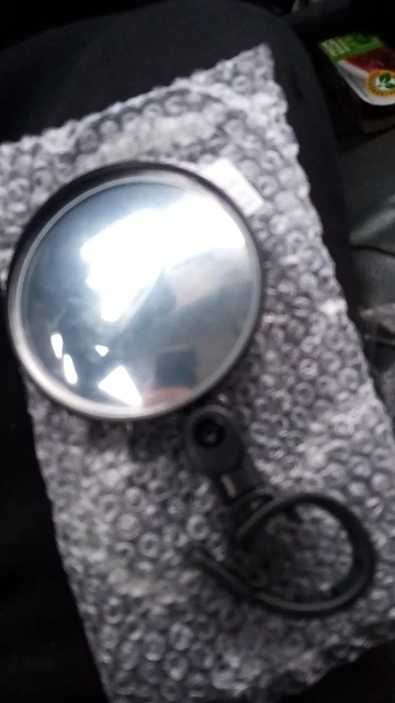 Очень быстрая доставка в течении двух недель, трек отслеживается. Товар пришёл целым и невредимым, упакован в пакет с пупырышками. Зеркало большое, сферическое, покрыто защитной пленкой, царапин нет. Обзор назад хороший. Цена не высокая. Поворотные карданчики упругие, соединения не разболтаны. Хомутик с регулировочными отверстиями позволяют закрепить зеркальце на руль любой толщины. Мне понравилось!
