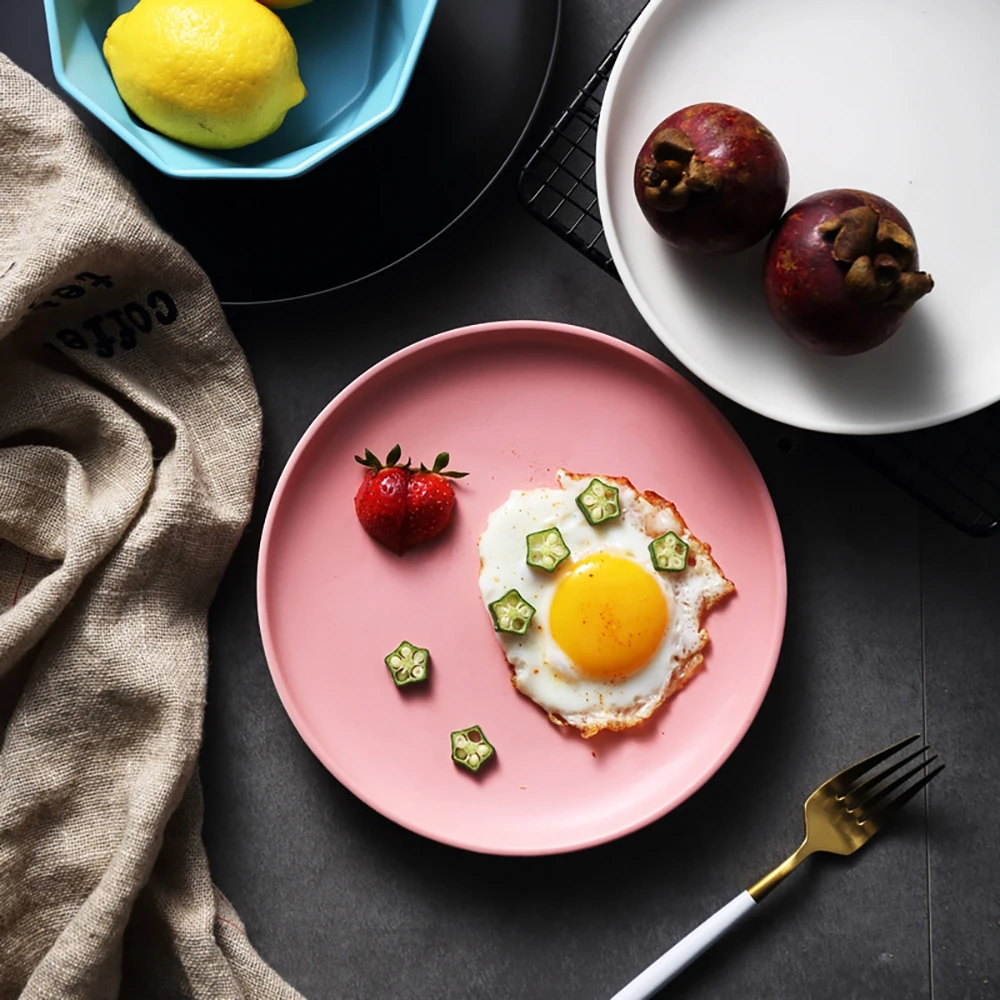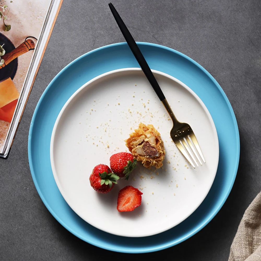 Керамические Столовые тарелки, тарелка из говядины, посуда, круглая, одноцветная, десертная тарелка, простые и креативные салатницы, посуда Akuhome