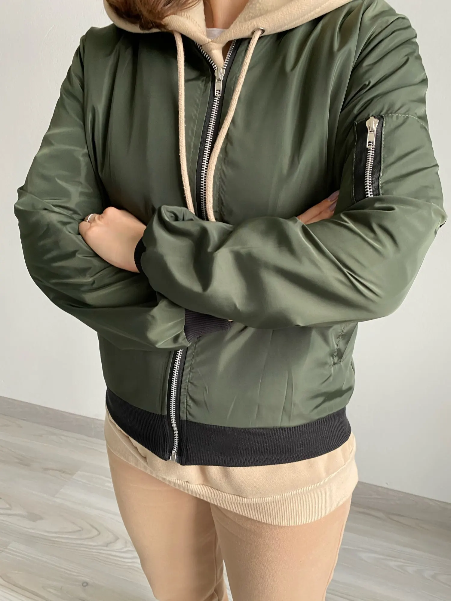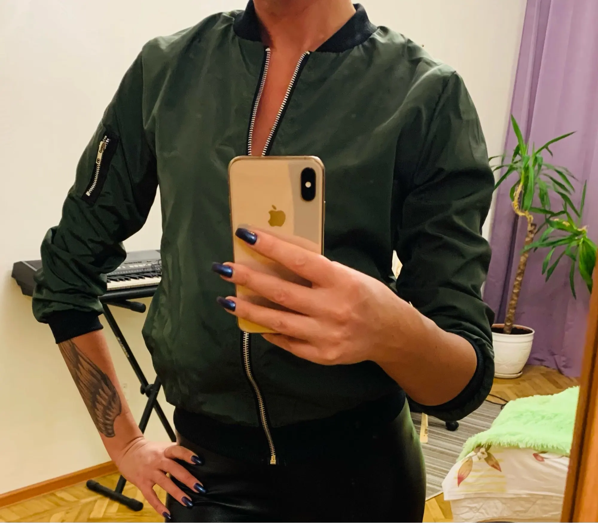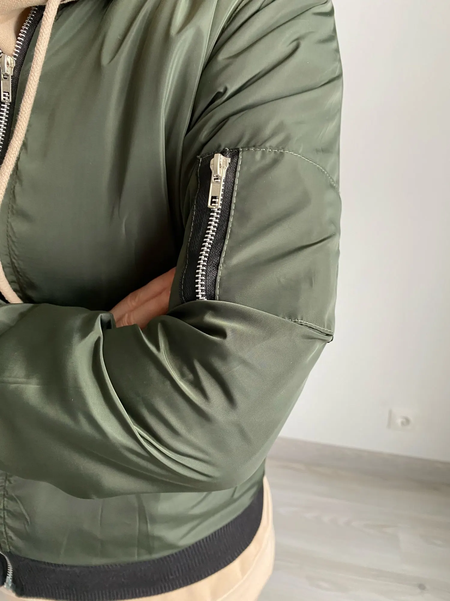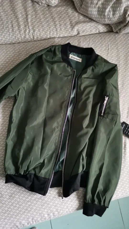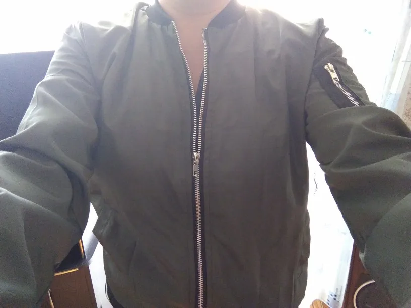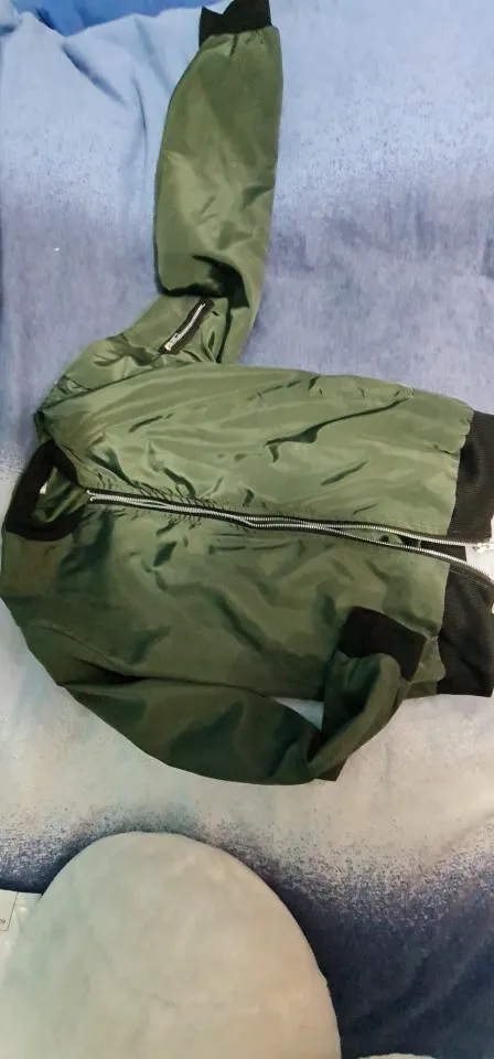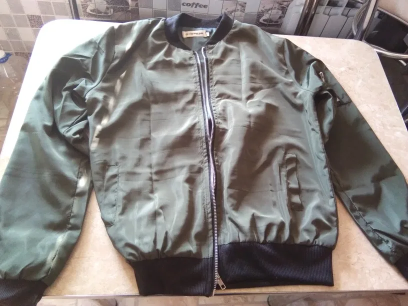 Летняя куртка-бомбер, ткань хорошая, но красивая. Я ожидал, что он более голубовато-зеленый, а цвет хаки. В любом случае, счастливы.