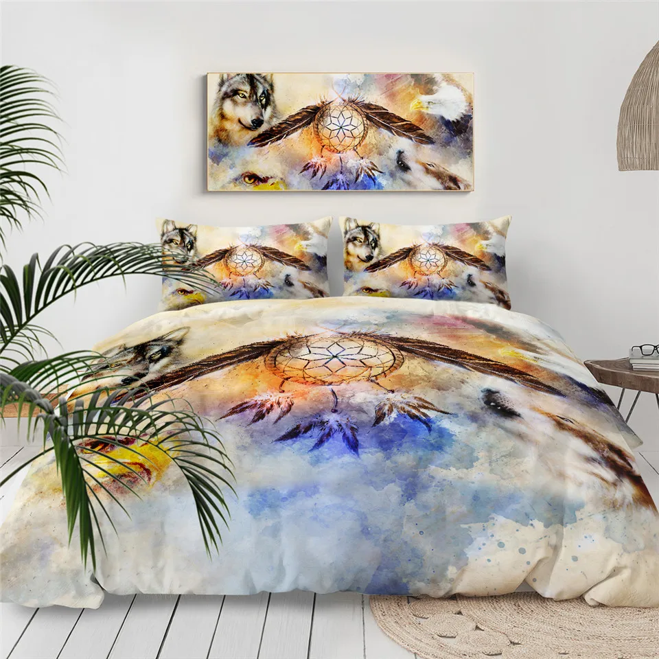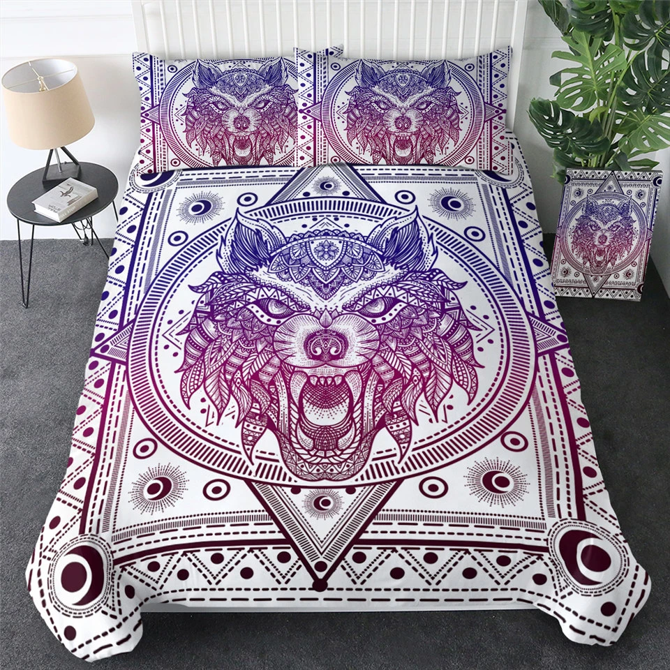 Постельные принадлежности Outlet 3D Wolf, постельные комплекты, роскошный Ловец снов, пододеяльник, Комплект постельного белья для горной кровати, размер королевы, фиолетовые постельные принадлежности, Прямая поставка