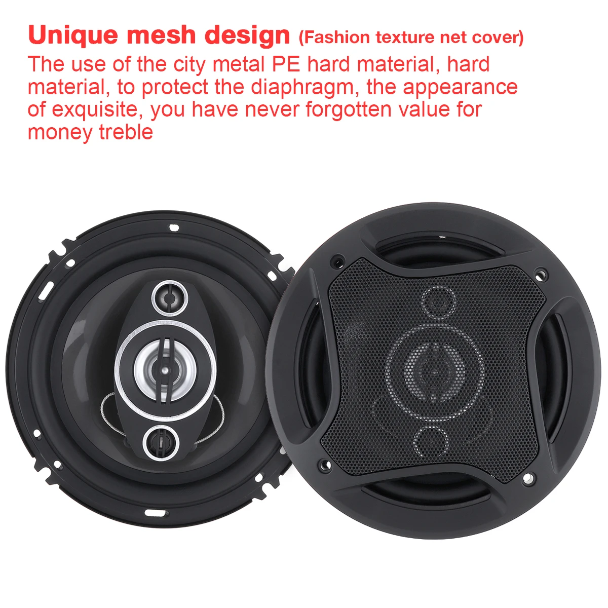 Особенности:-Высокая чувствительность, высокое голосовое разрешение, подробная информация о полном описании.-Магнит высокой плотности, высокая производительность голоса, использование аэрокосмических магнитов, полная мощность.-Четкий и полный высоких, мягких и приятно слышать, бас спокойный и мощный, сильный взрывной.-Высокая мощность, подходит для различных музыкальных стилей, популярных, классических, джаз, кантри, рок, это может быть очень хорошим контролем.-Влагостойкая, Роговая полипропиленовая Резина и литьевая туша эффективно влагостойкая, уменьшает искажения.-Универсальная неразрушающая Поддержка различных установленных моделей.-Высокая степень шумоподавления, HIFI-уровень опыта, сценическая панель, чтобы насладиться стереозвуком, технологией и воспроизведением.-Прочный и прочный корпус, материал динамика прагматичный, Равномерная толщина железной рамы, чтобы обеспечить звук и толстый звук. Высокая производительность при низких высоких нагрузках.-ПП инъекции бассейна, натуральный каучук диафрагмы, полная гибкость, может выполнять хорошо все виды музыки.-Использование высокотемпературной чистой медной серебряной катушки, большой диаметр, высокоэффективный проводящий звук, минимизирует искажения.-Роговые клеммы симметричные правила для обеспечения симметричных клемм, что упрощает шаги установки, чтобы эффективно вставлять вправо, очень просто, поверхность алюминия, высокая эффективность проводимости.-Ферритовый магнит, гибридный объемный