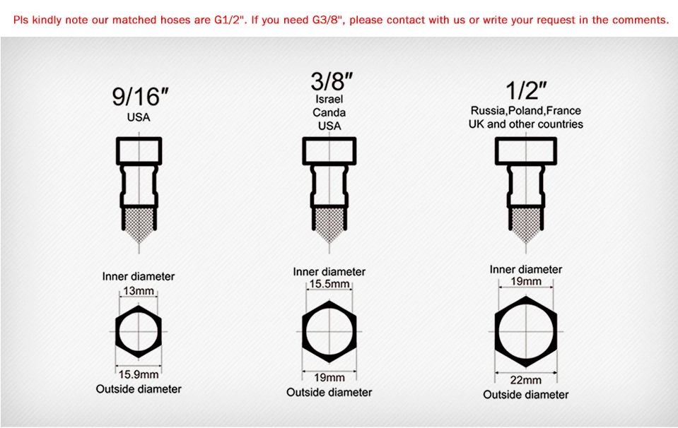 Неправильные шланги получены, невозможно туго шланга, внутри крана, нужны шланги с трубкой в конце, как описано.