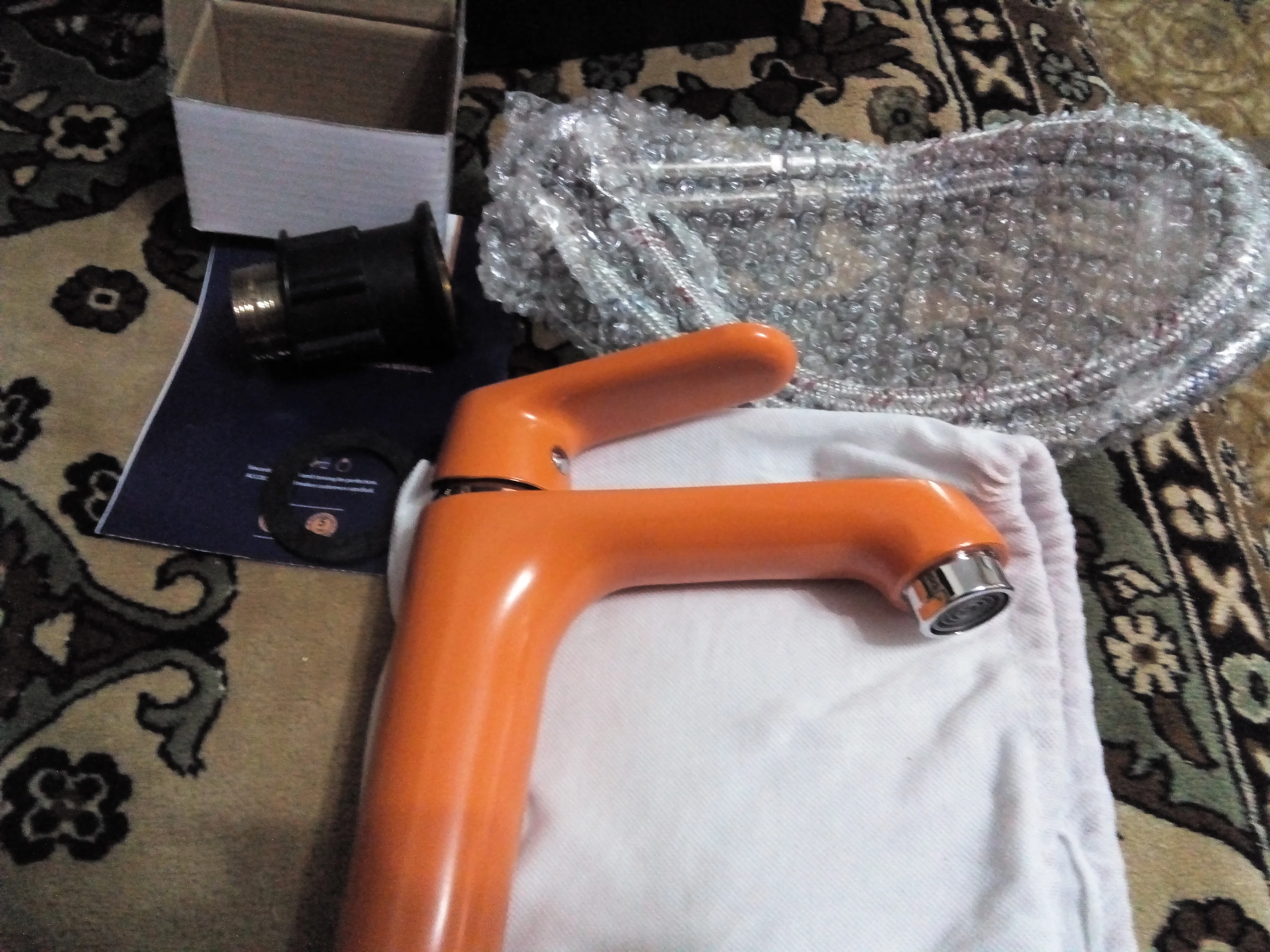 Быстрая доставка. Кран пока не ставили, но выглядит очень здорово. Упаковка: кран в тканевом мешочке, гибкие подводы в запаянном пакете это все в картонной коробке и сверху пакет с пупыркой. Рекомендую и товар и процавца.