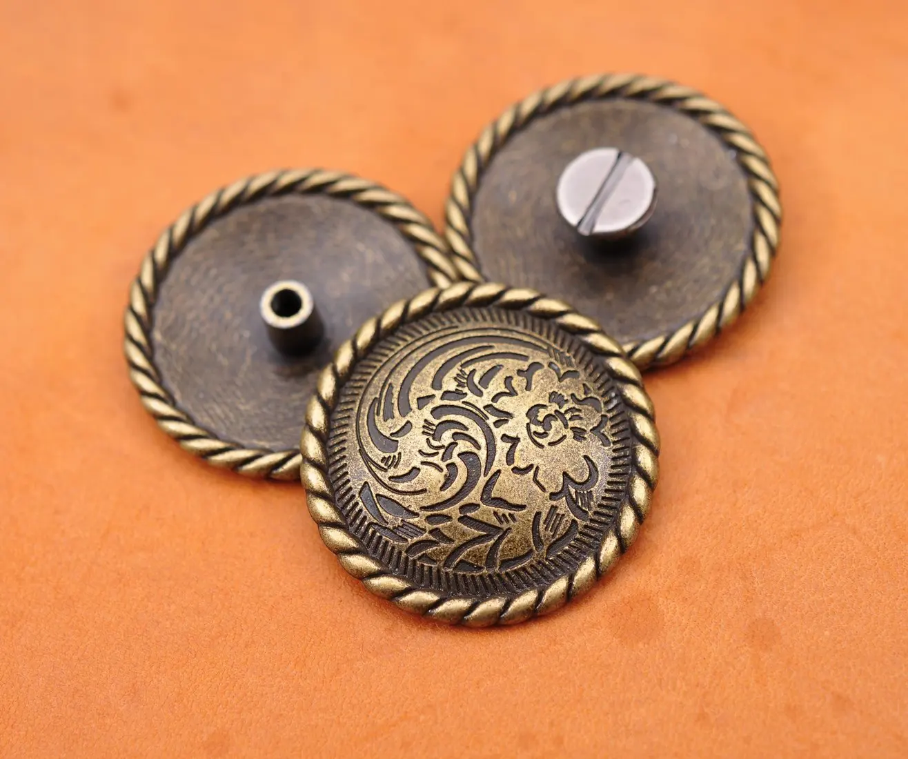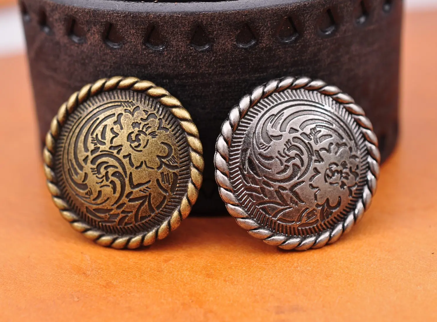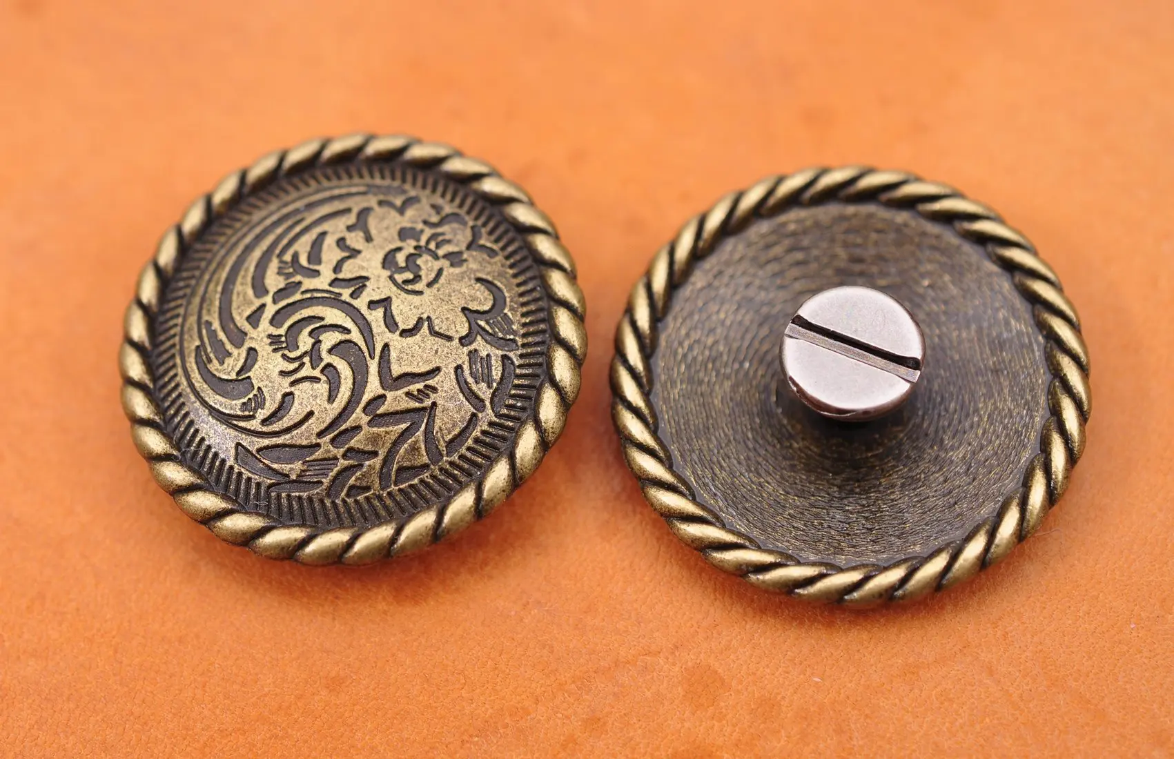 30 мм 10X античный латунный цветок гравированная веревка боковой кожевенный ремень кошелек украшения Аппаратные средства DIY CONCHO набор винтовой задней части