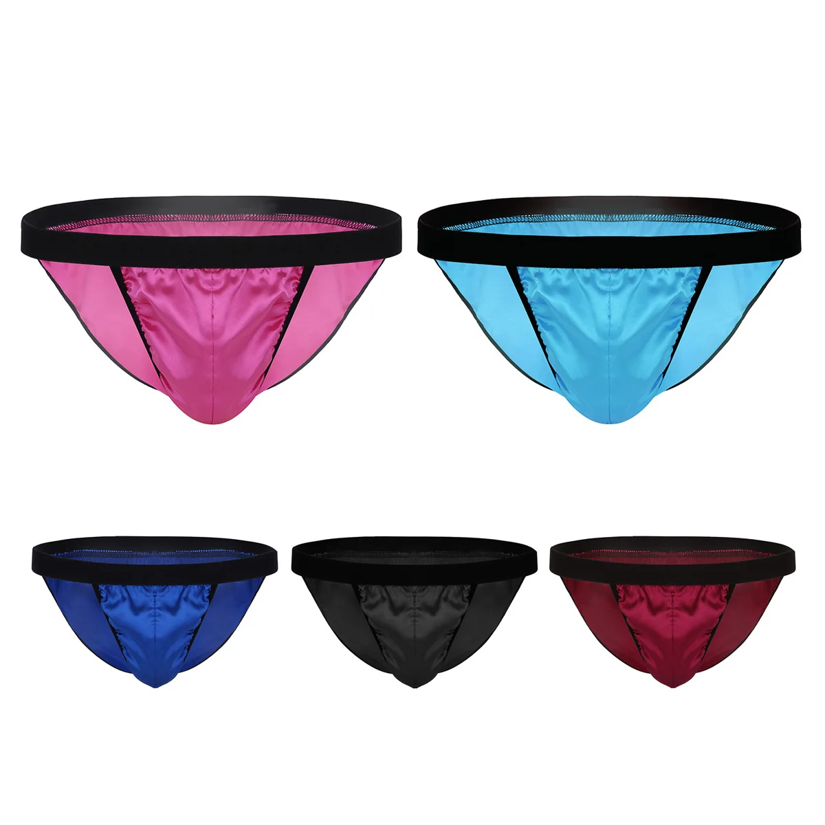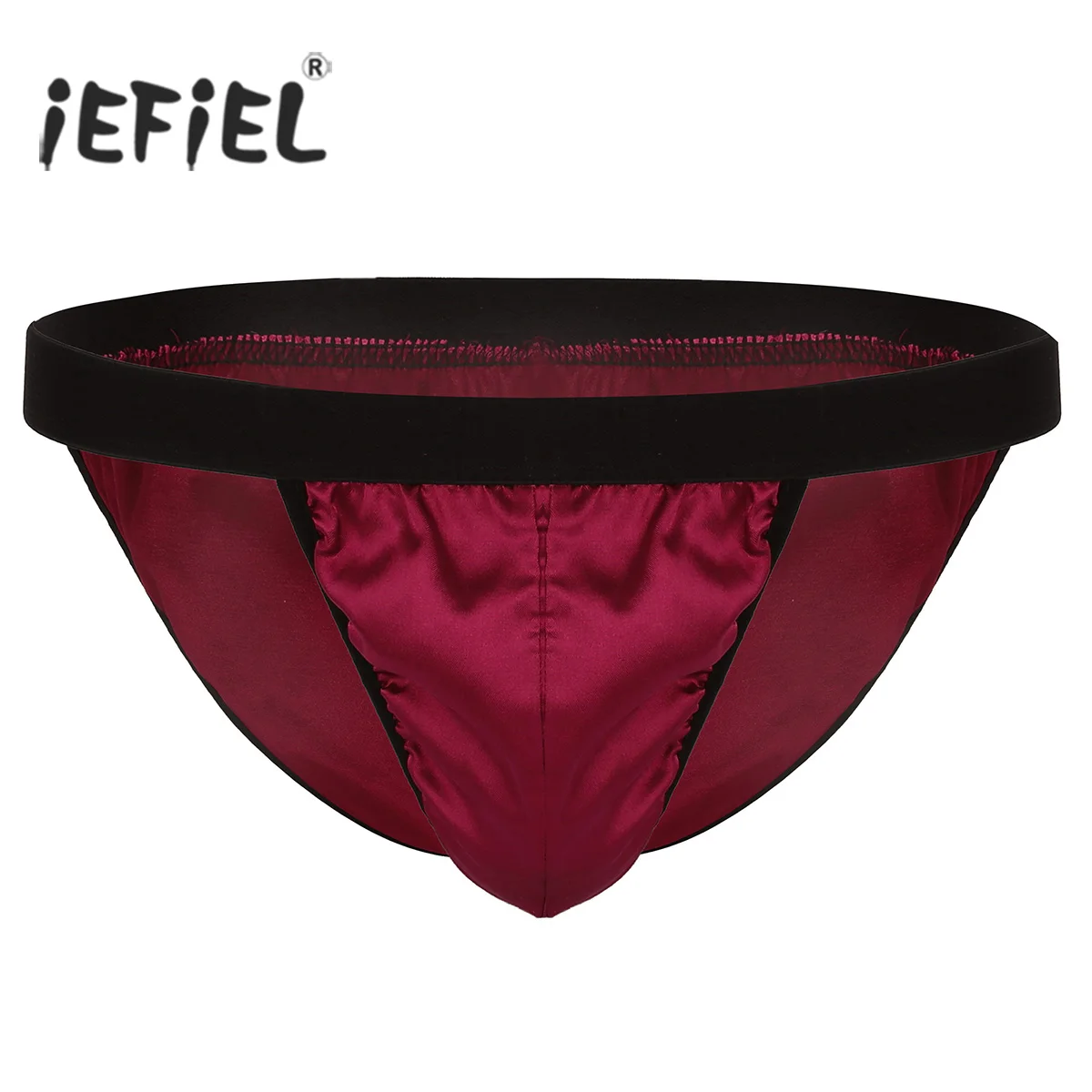 Мужские трусы-бикини iEFiEL, с низкой посадкой, с высоким вырезом, из блестящей ткани, сексуальное нижнее белье для геев