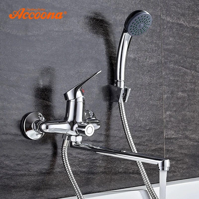 Смеситель для душа Accoona A7150, кран для ванной комнаты с ручным распылителем, настенный набор, водопад, одна ручка
