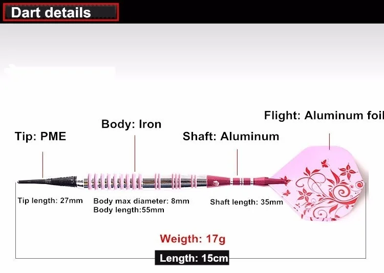 Профессиональные Дартс cueshoul 17 г, мягкие розовые дартс, электронные мягкие наконечники, Дартс с валом из алюминиевого сплава