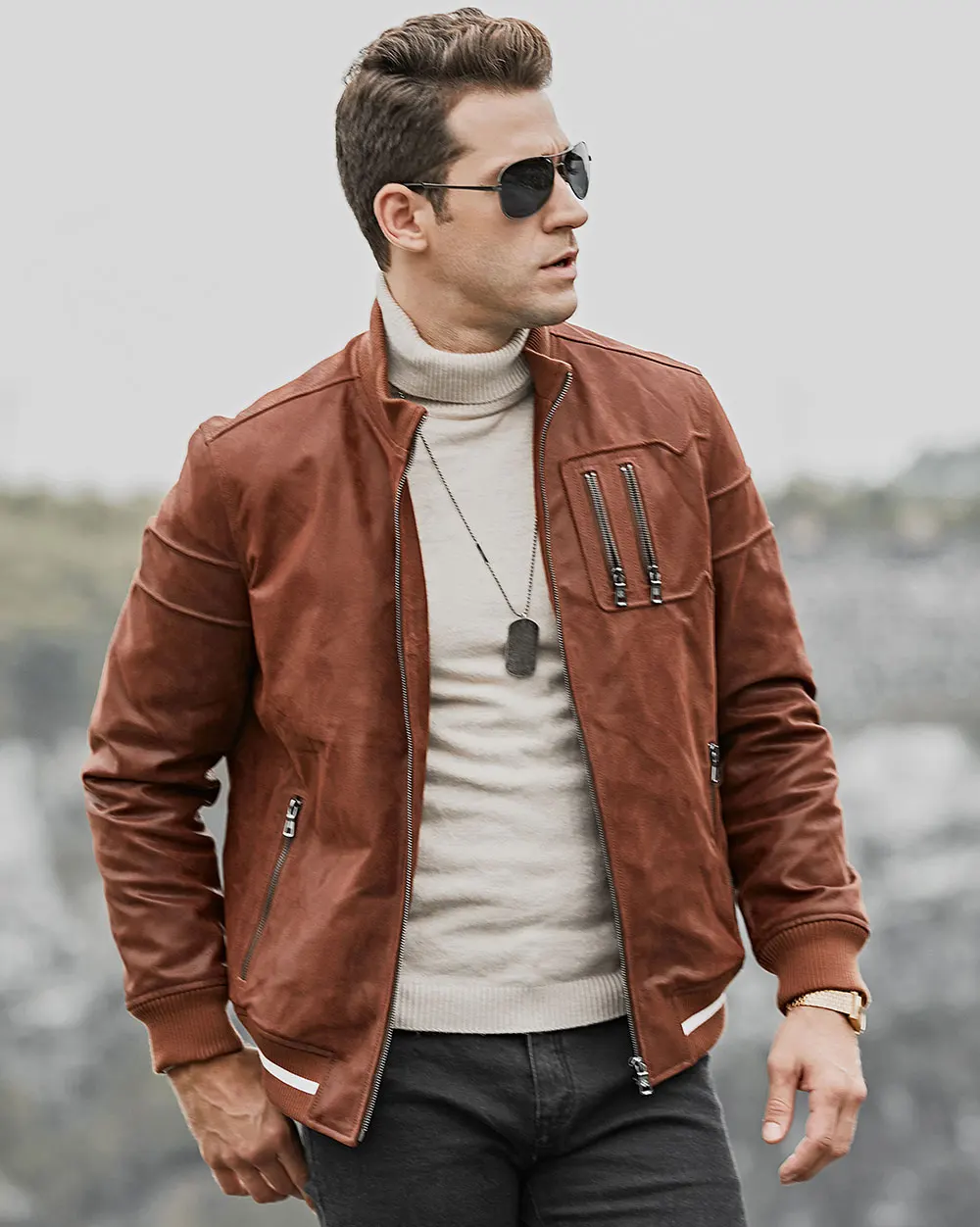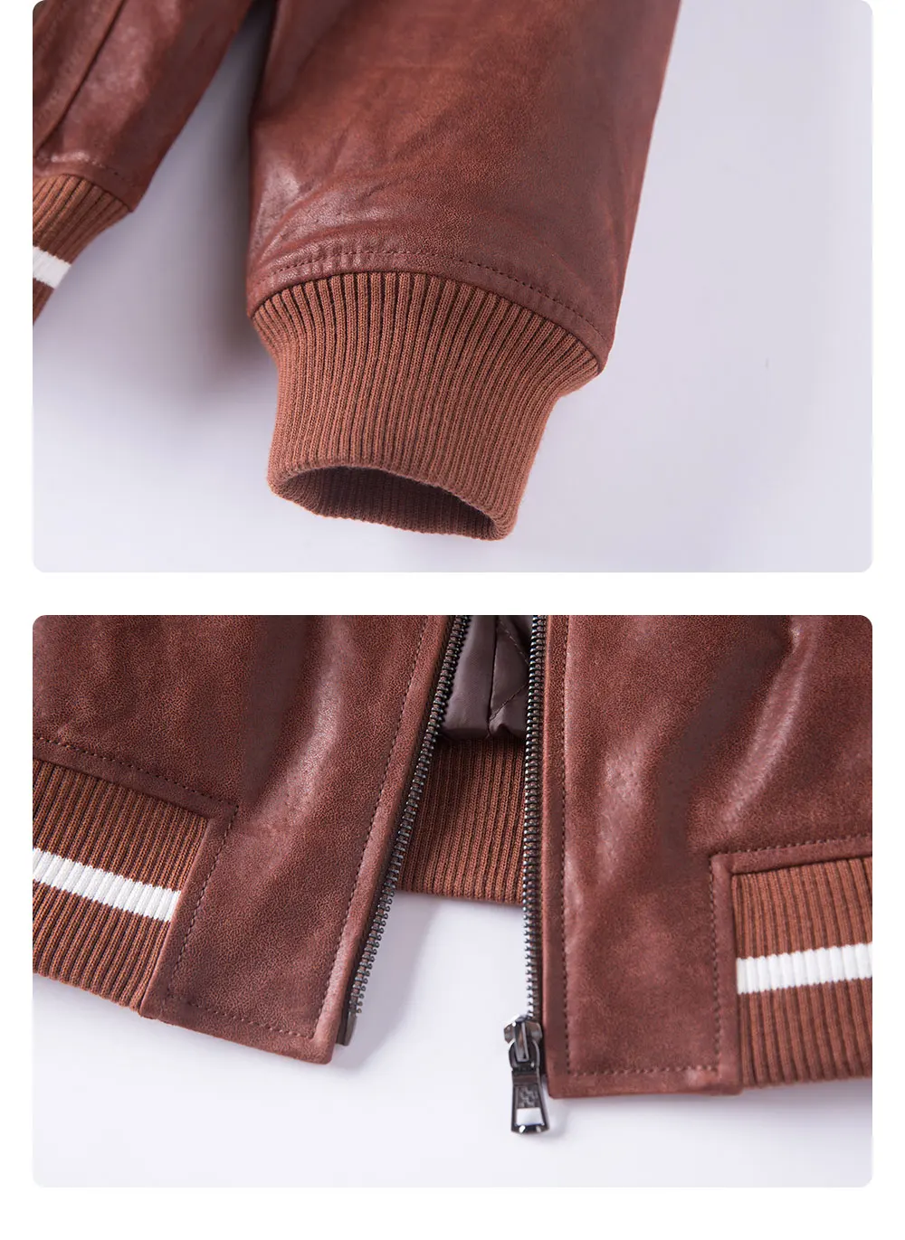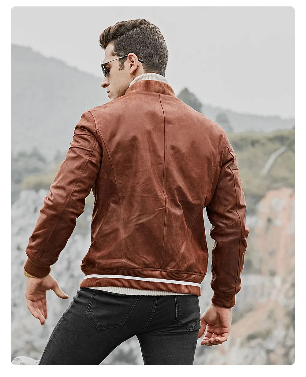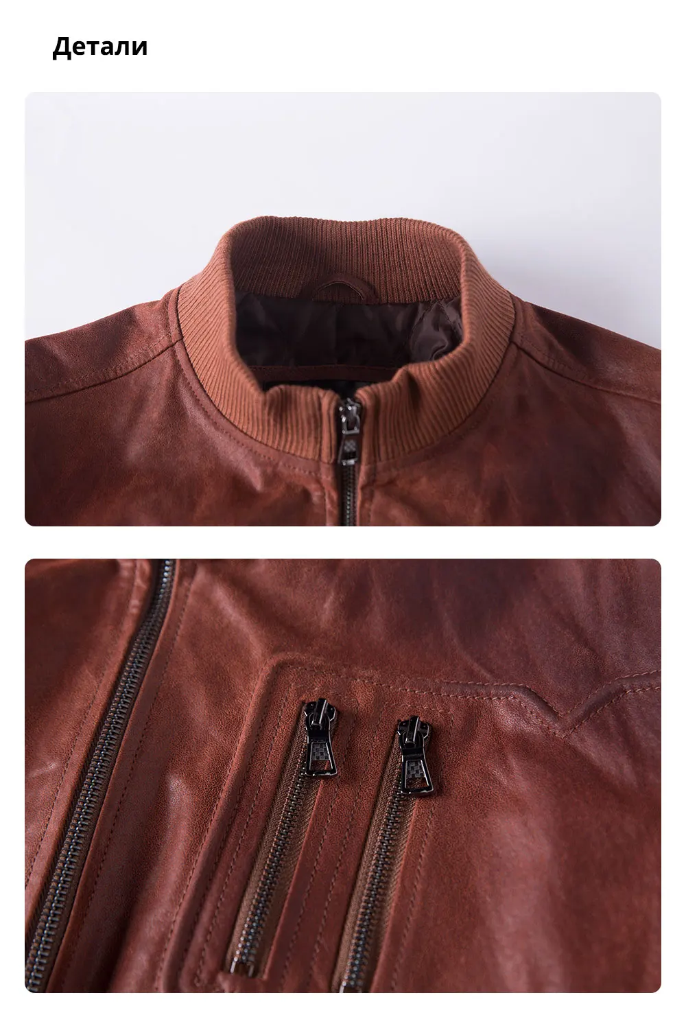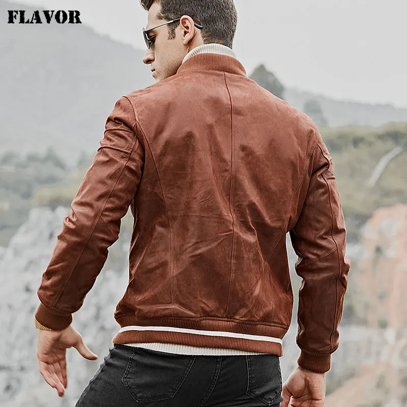 Kожаная куртка мужская FLAVOR, коричневый жакет из натуральной свин...