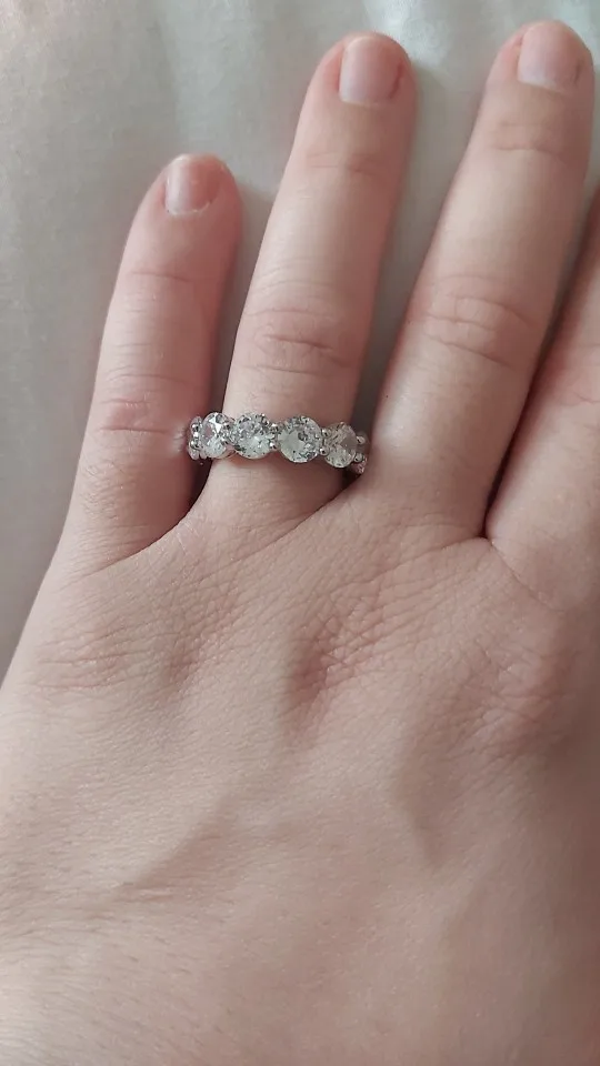Очень красивое кольцо очень хорошего качества. Камни блестят много, и доставка была очень быстрой. Единственный минус в том, что камни могут быть немного неудобными, потому что они большие. Кроме того, все хорошо. Доставка также была быстрой