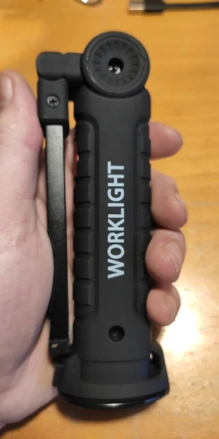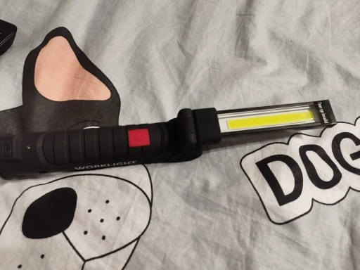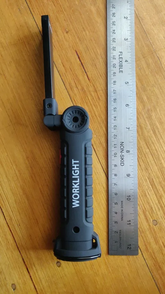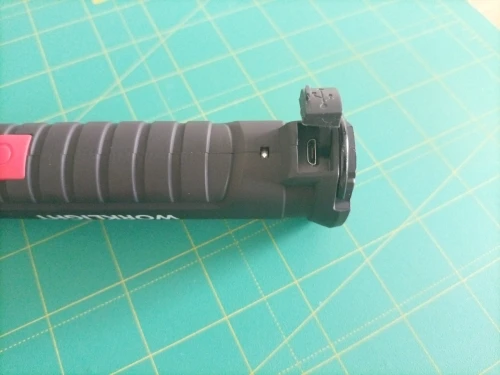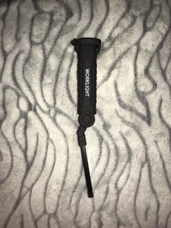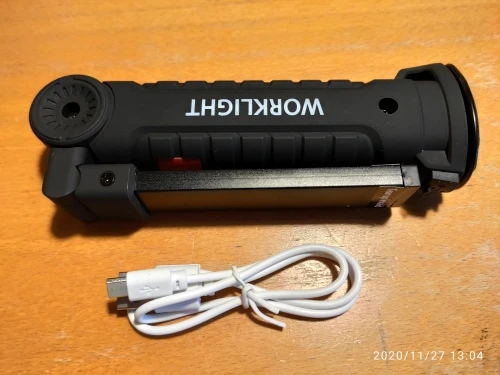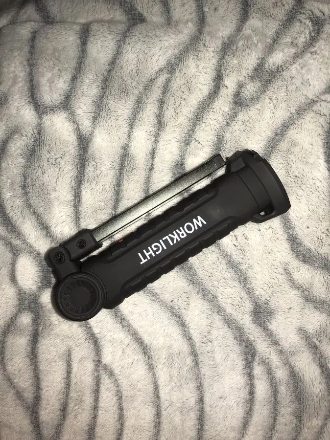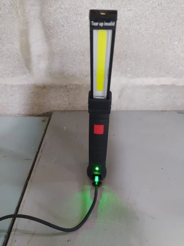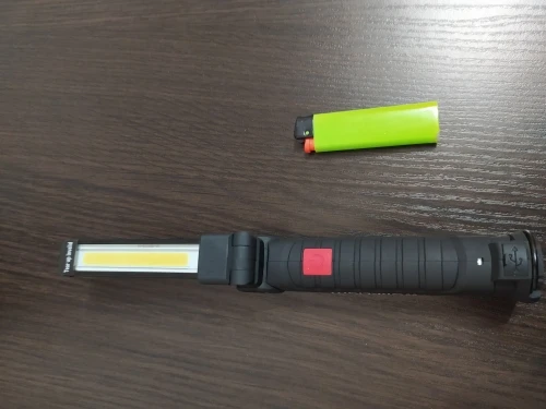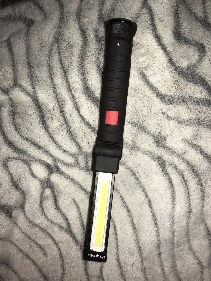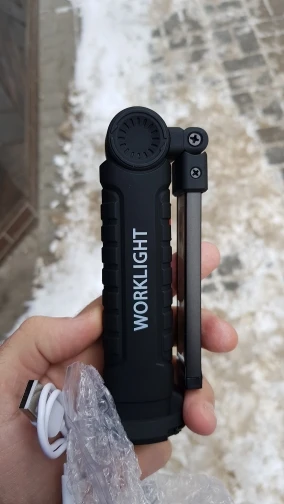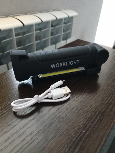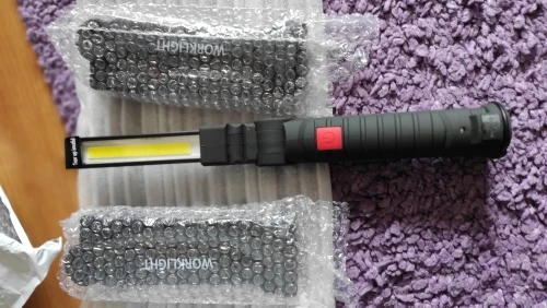 Доставка в течение недели. Хорошо защищен пузырьками. Возьмите кабели для зарядки через usb. Фонарик крепится на основание магнита, чтобы его можно было оставить в рабочей зоне. Также крюк, чтобы я мог его повесить. Придайте два режима белого света. Два красных фонаря. И режим маленького переднего светодиода. Он дает много света. Идеально подходит для переноски в ящике для инструментов.