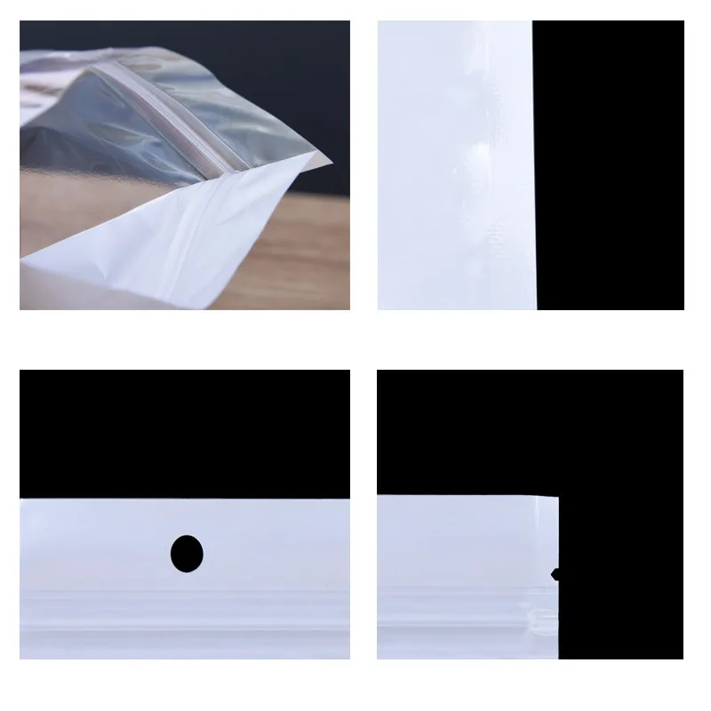 100 шт. белые прозрачные самозакрывающиеся пластиковые пакеты на молнии для розничной упаковки, пакеты на молнии с отверстием для подвешивания