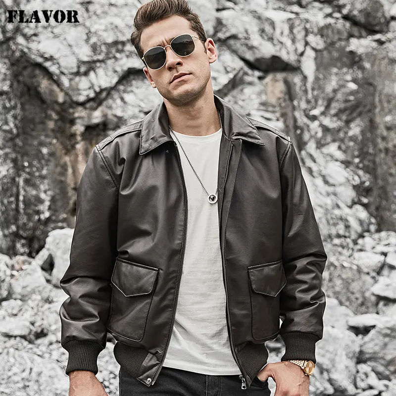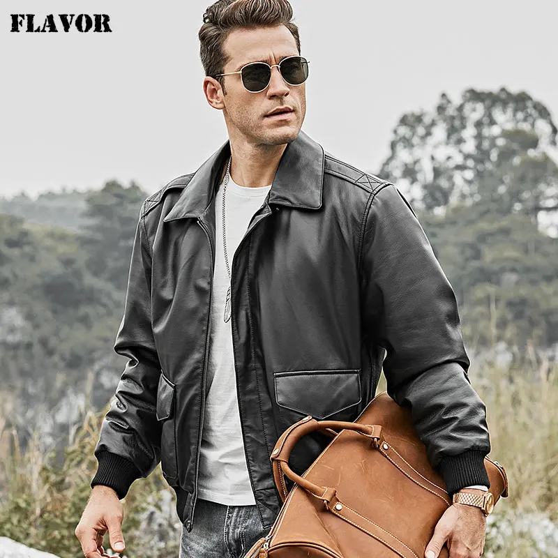 Мужская кожаная куртка-бомбер Air Force FLAVOR, теплая куртка-Авиатор из натуральной кожи ягненка с хлопковой подкладкой для зимы