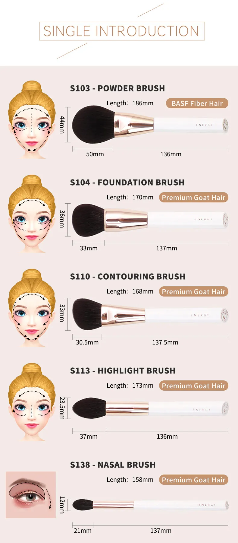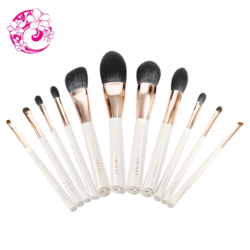 Набор кистей для макияжа ENERGY, кисточки из козьего пони, жемчужно-белого цвета из АБС-пластика, 11 шт., инструменты для макияжа, профессиональные кисточки, наборы для макияжа