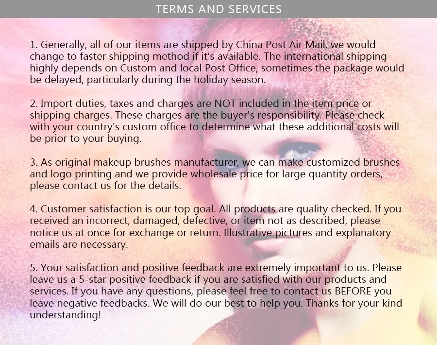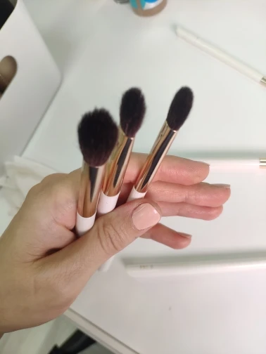 Немного клея наклеивается на металлические броги и корень hait. Но в противном случае отличное качество. Evem получил 2 бесплатных дополнительных кисти для глаз. В целом доволен заказом