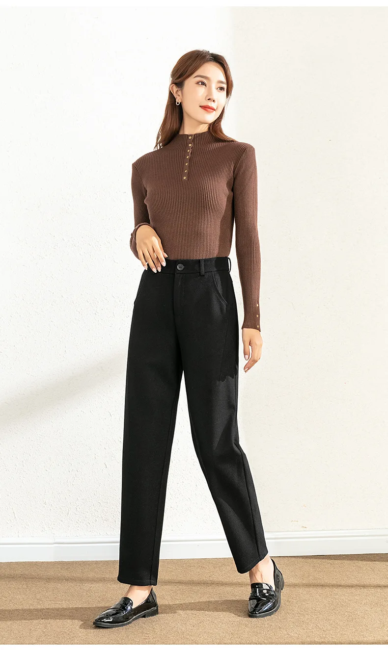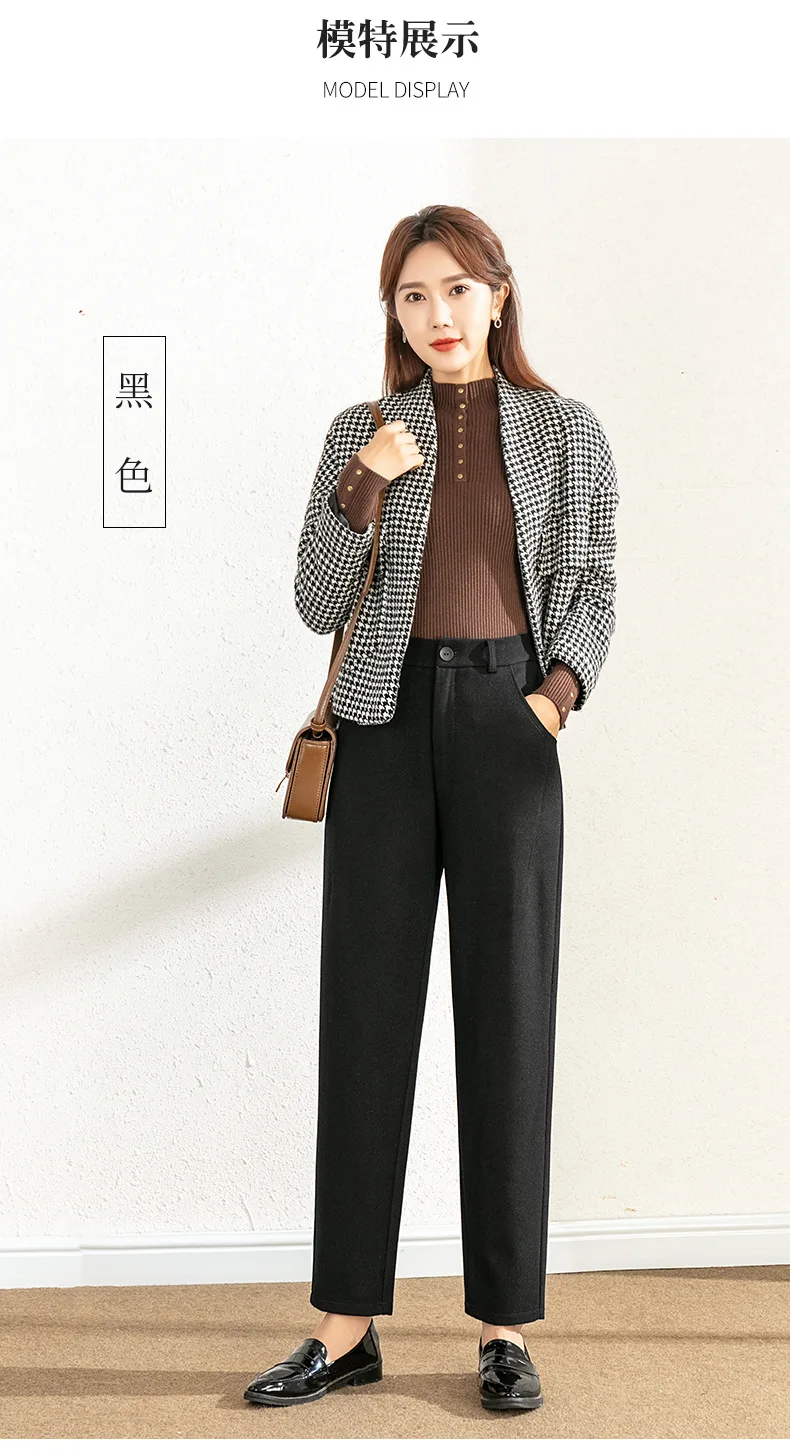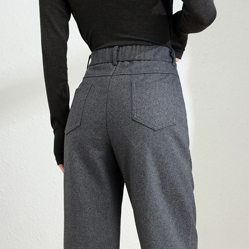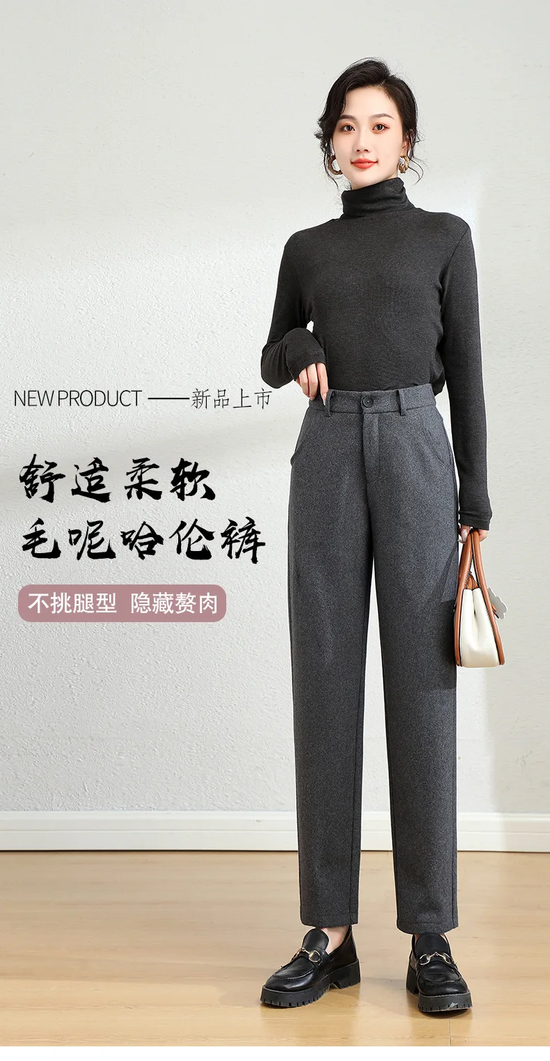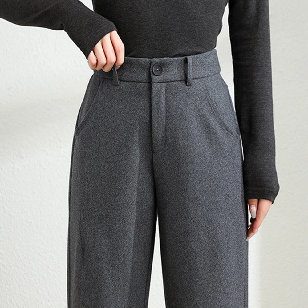 Брюки-шаровары женские, шерстяные, с высокой талией, черные, серые, однотонные, на осень, размера плюс