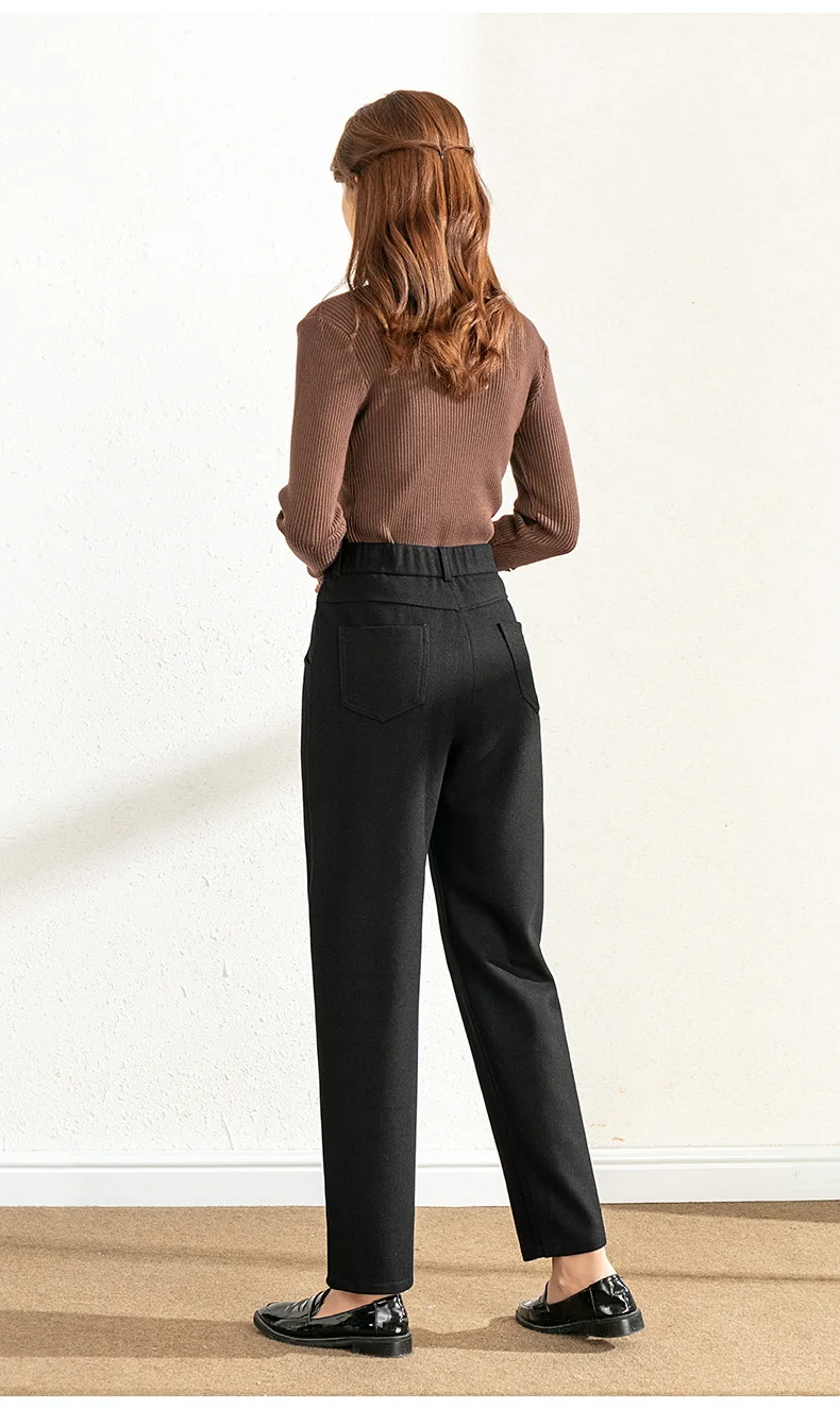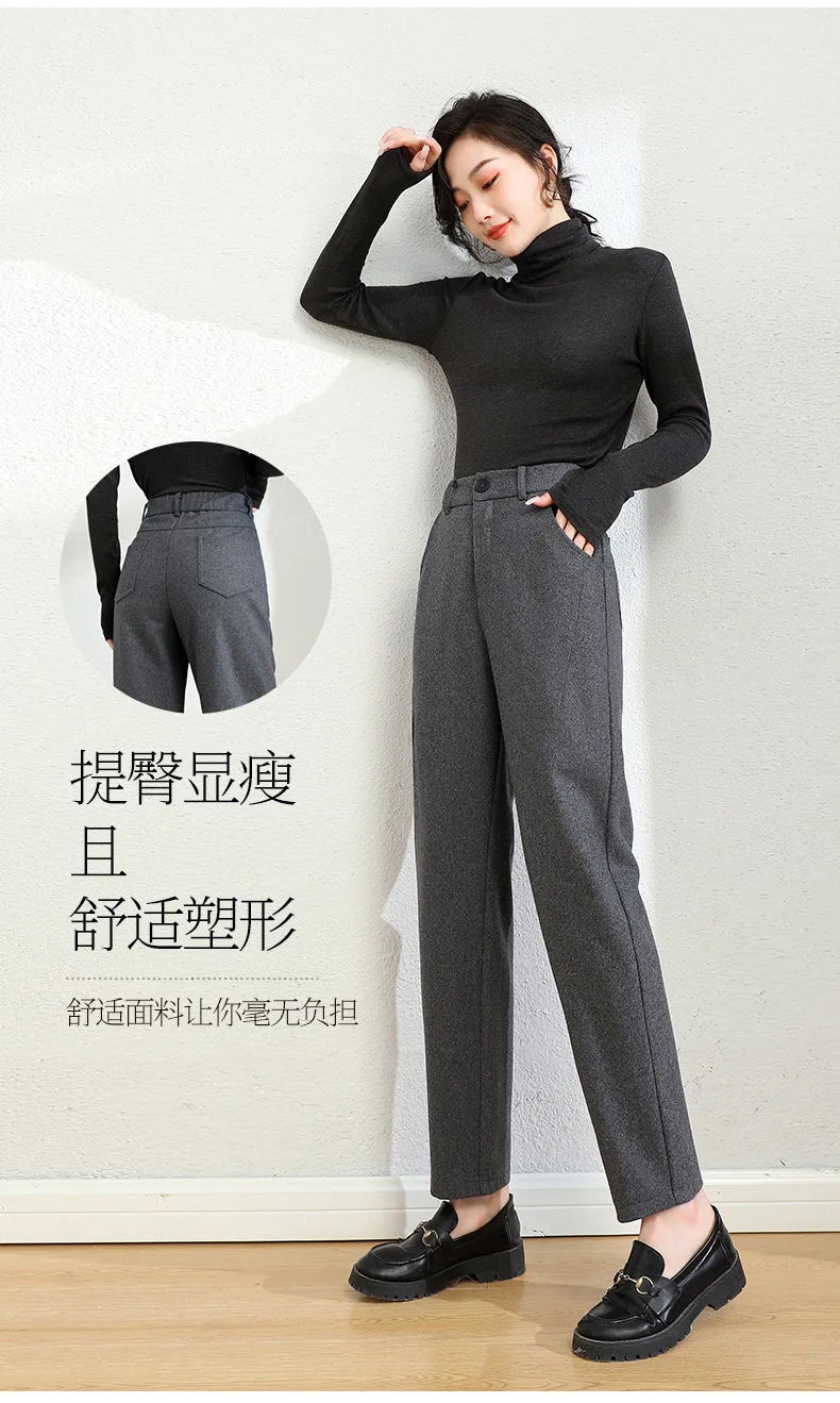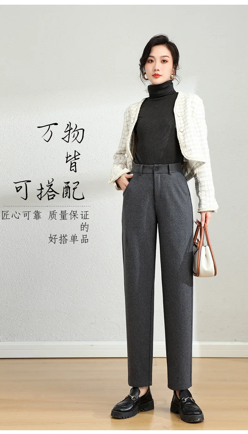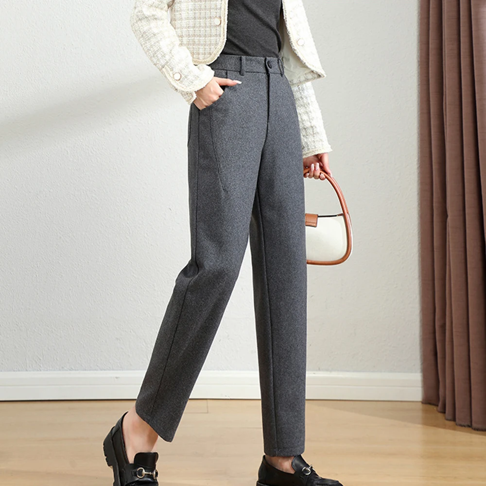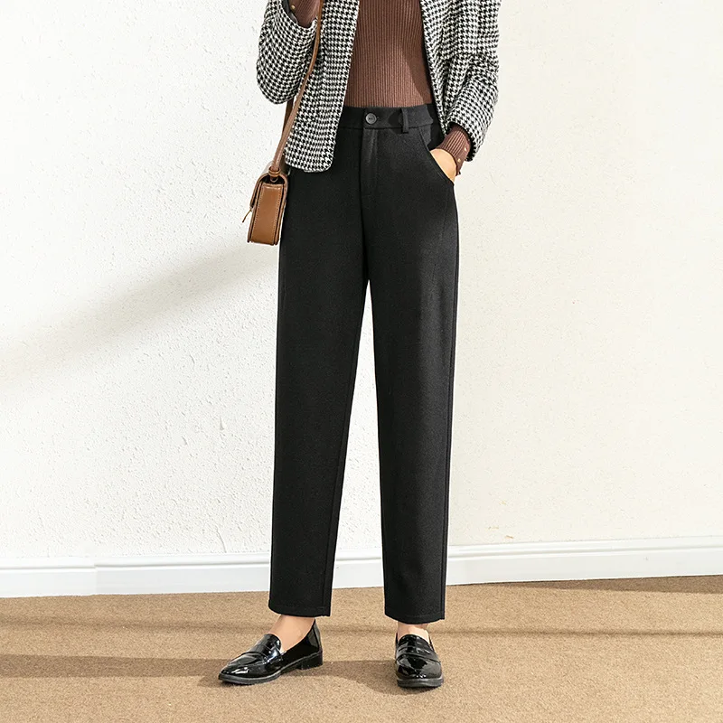 Брюки-шаровары женские, шерстяные, с высокой талией, черные, серые, однотонные, на осень, размера плюс