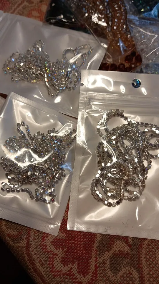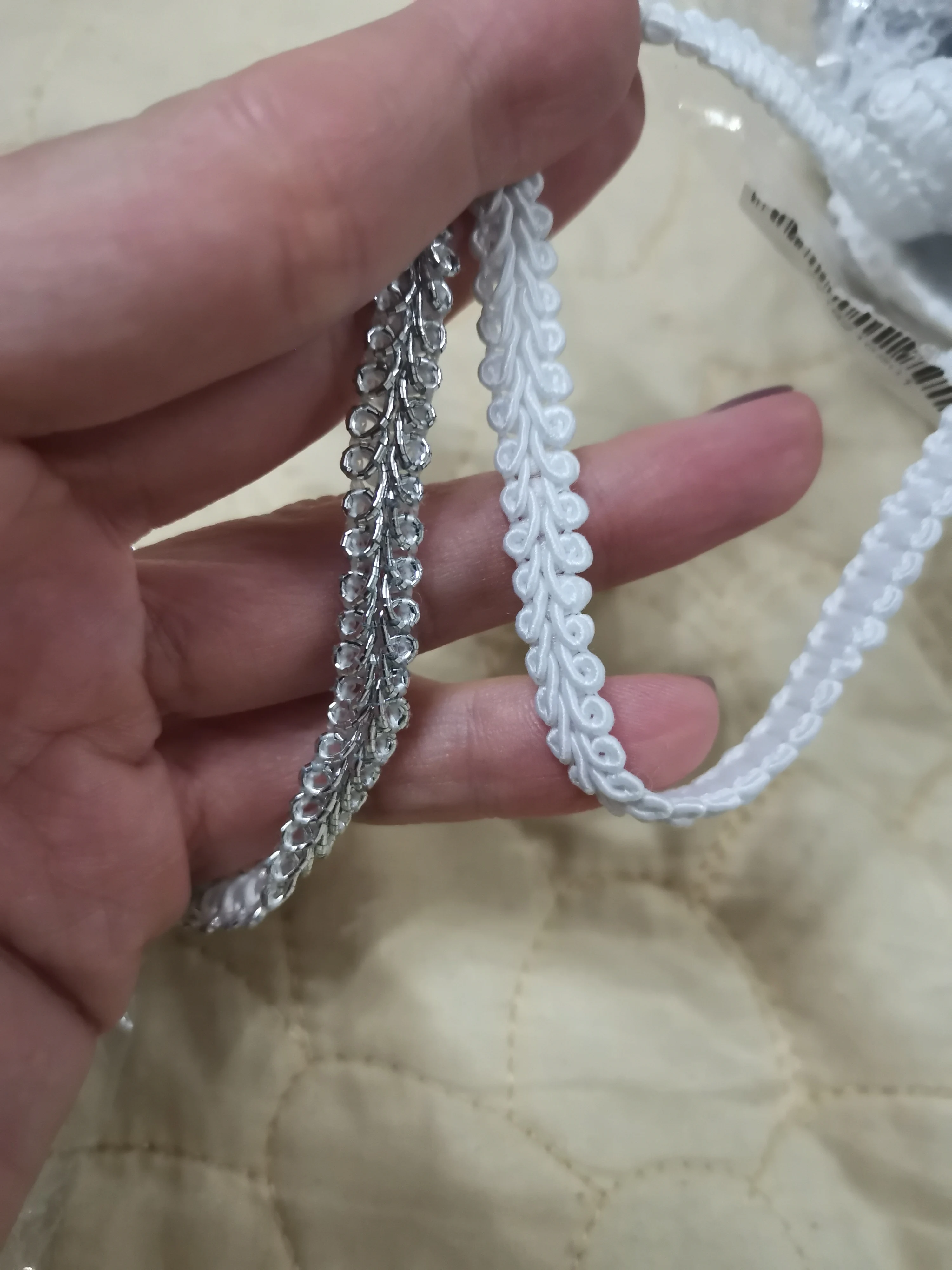 очень красивые страховые ленты, заказала белые и искрящиеся, двух размеров. . искрящиеся (белые АВ) пришли с бонусом - вместо метра, на 15см больше;)