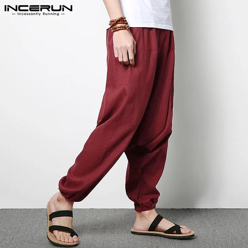 Брюки INCERUN размера плюс 5XL мужские, свободные широкие штаны, хлопковые джоггеры с большим шаговым швом, модные брюки для танцев, мужская одежда 2022
