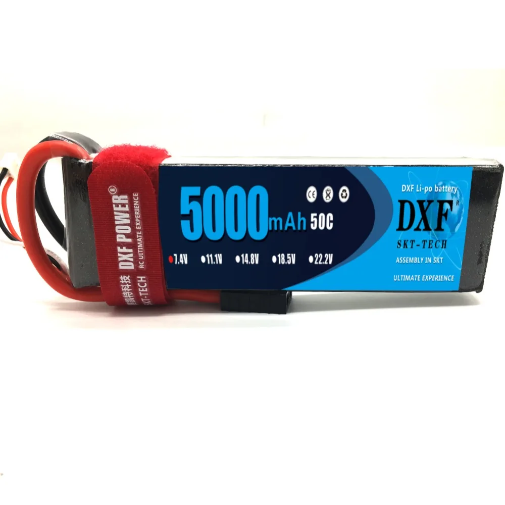 Литий-полимерный аккумулятор DXF 7,4 в 5000 мАч 50C 100C 2S аккумулятор для радиоуправляемой машины, лодки, самолета, квадрокоптера Slash 4x4, Ремо хобби