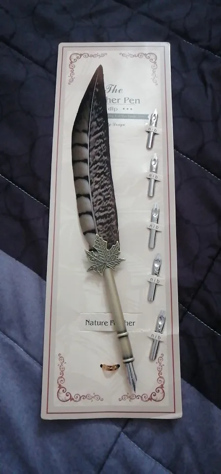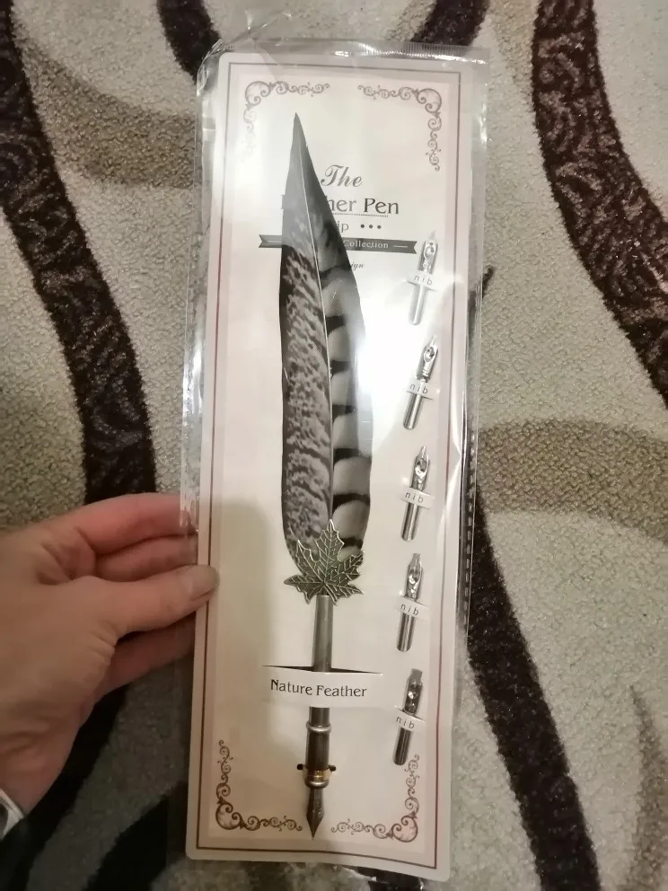 Muy bonita. Me encanta. Soy una apasionada de la escritura con pluma de escribir, ésta tiene un diseño especial, ya había pedido otra anteriormente de otro modelo y también muy bonita. Recomendable.