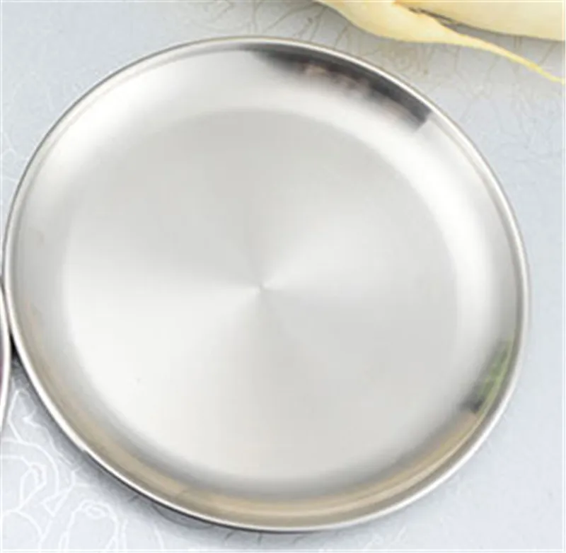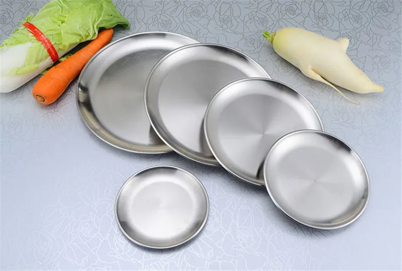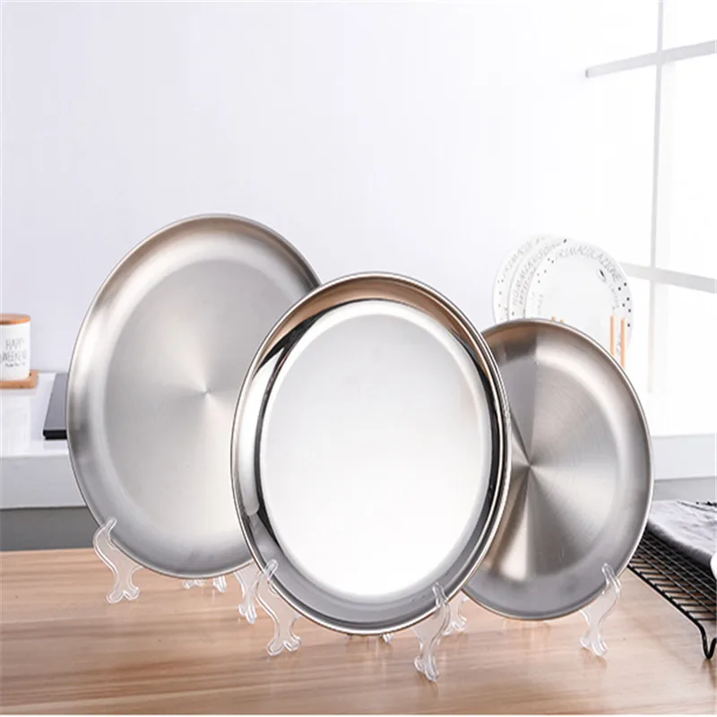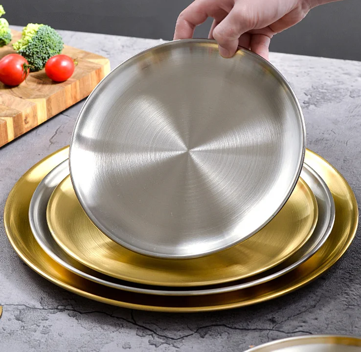 Круглая тарелка для стейка, корейский поднос из нержавеющей стали 304, однослойная зеркальная отделка для посуда для барбекю