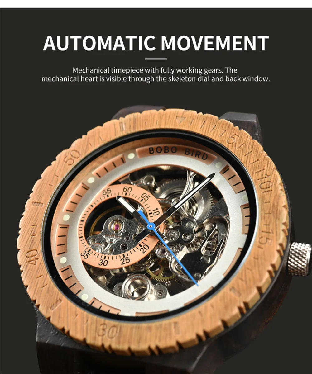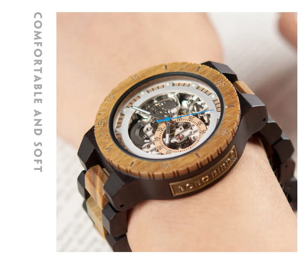 Часы наручные BOBO BIRD Мужские механические, Роскошные автоматические многофункциональные, в стиле ретро, с золотыми этикетками
