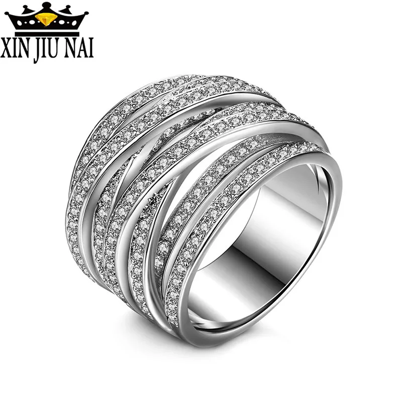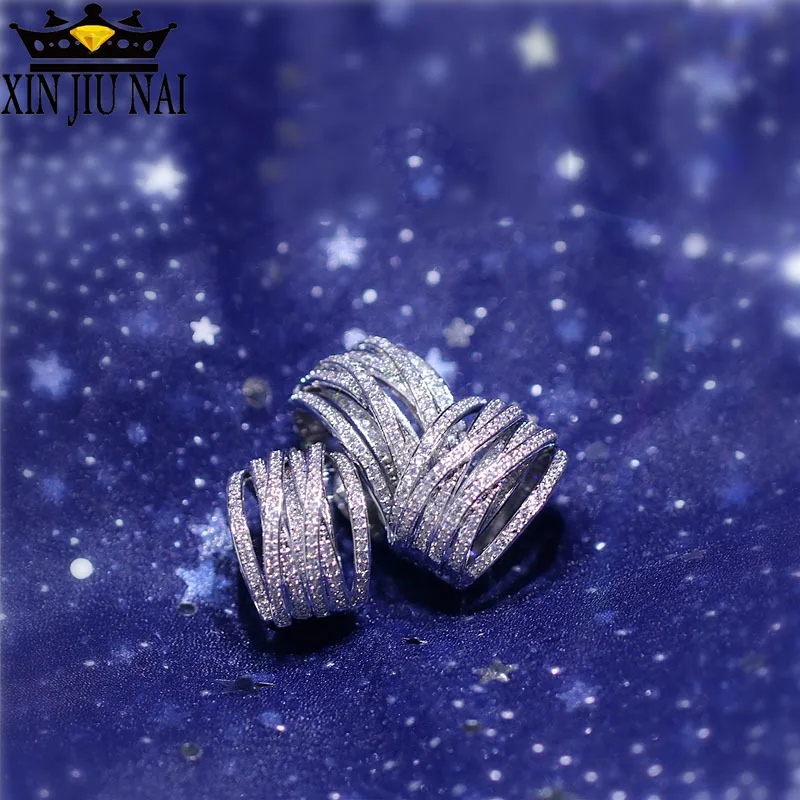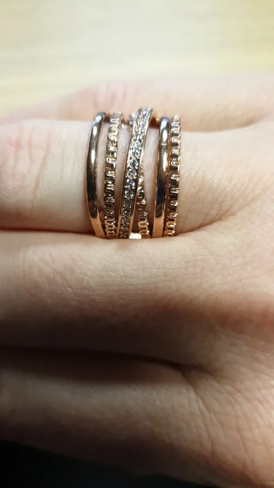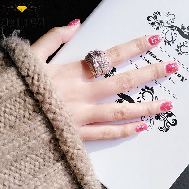 Женское многослойное кольцо Anillos, серебряное, розовое золото, многослойное, с цирконием, для невесты, 925