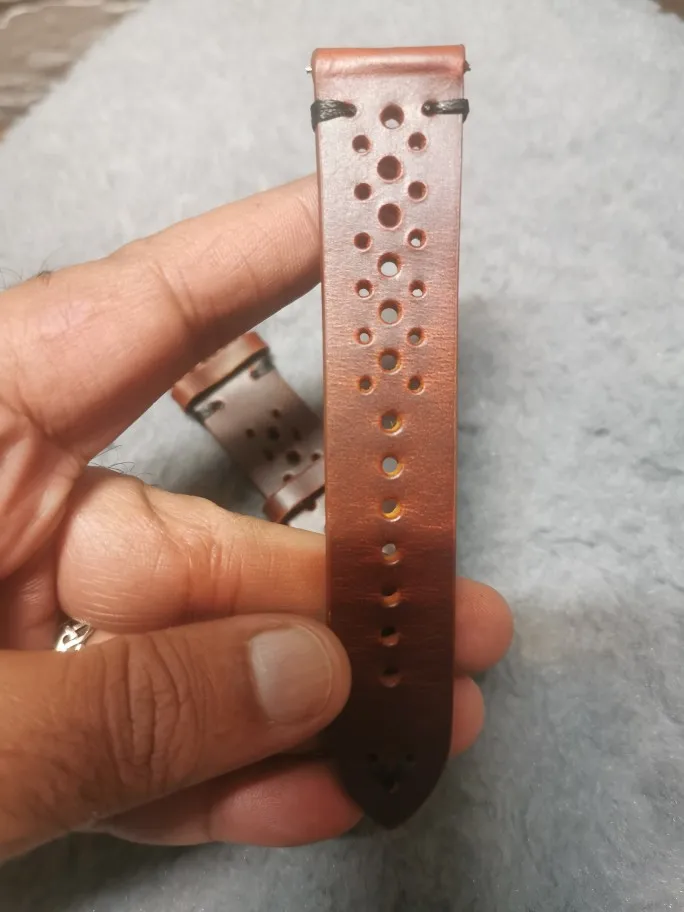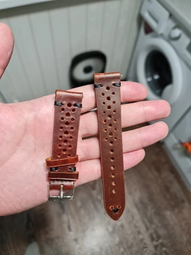 За свои деньги ремешок очень хорош, из минусов - белая строчка заплавлена с лицевой стороны, непонятно, почему не с внутренней. не критично