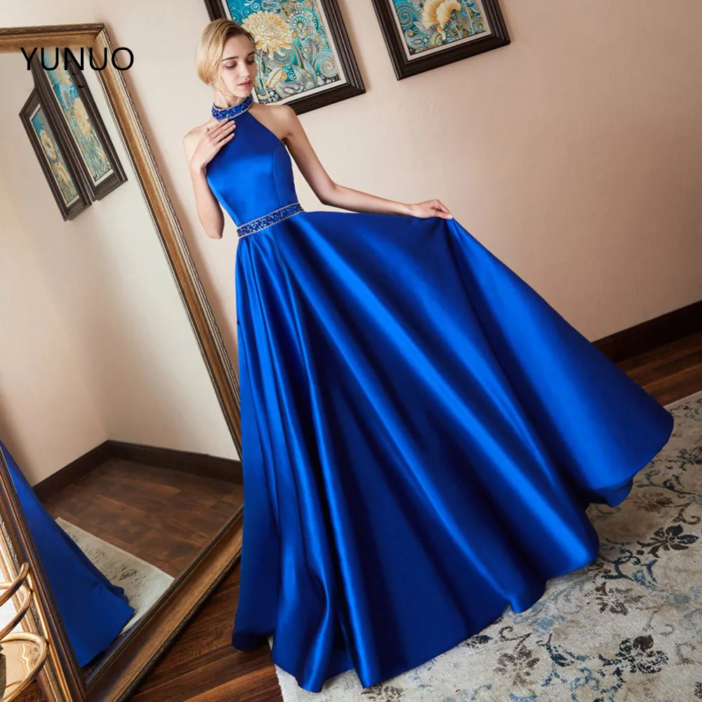 Женское вечернее платье YUNUO, роскошное синее платье из 2 частей, длинное ТРАПЕЦИЕВИДНОЕ ПЛАТЬЕ с бусинами для выпускного вечера, 2022, 765