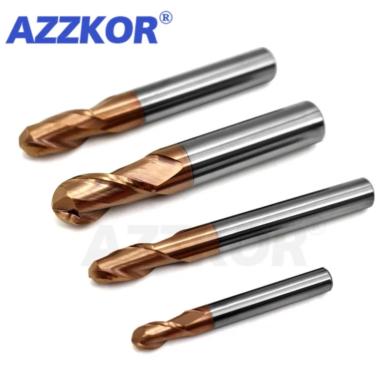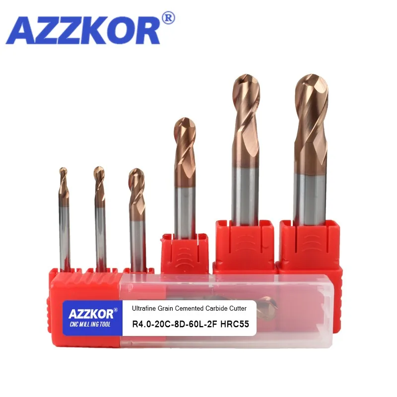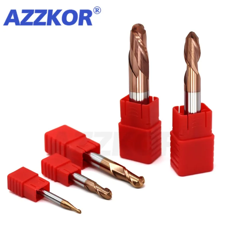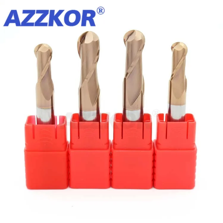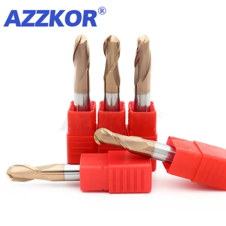 Фреза с покрытием из сплава вольфрамовой стали, инструмент с ЧПУ Maching Hrc55, сферические торцевые фрезы AZZKOR, верхняя фреза, станок, торцевая фреза