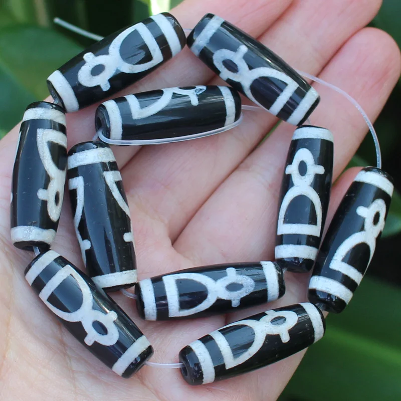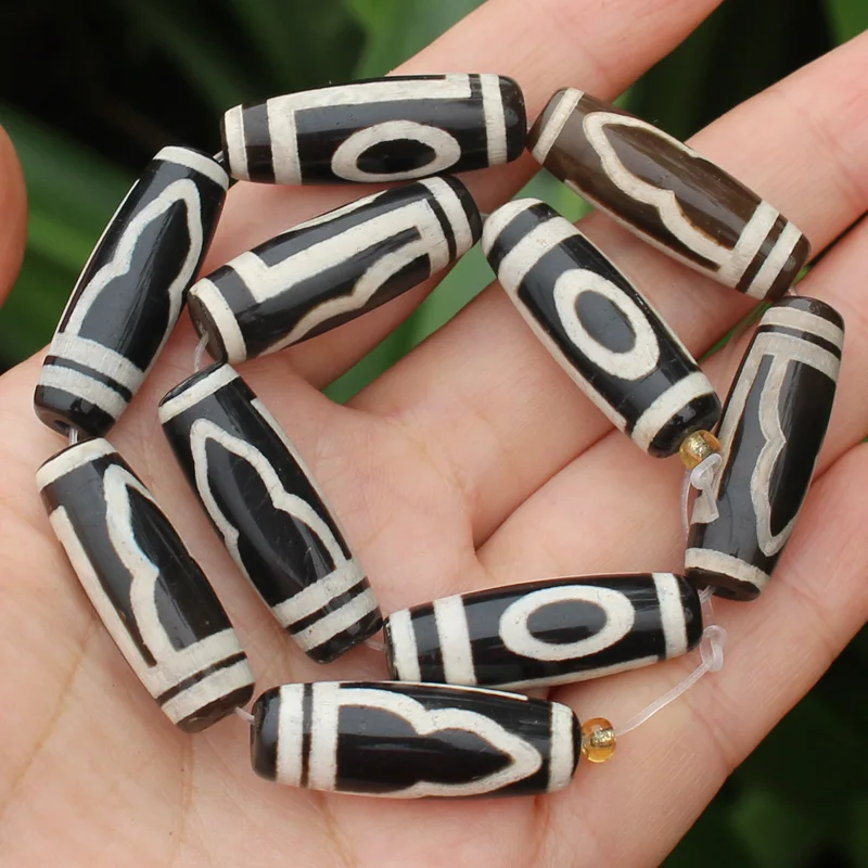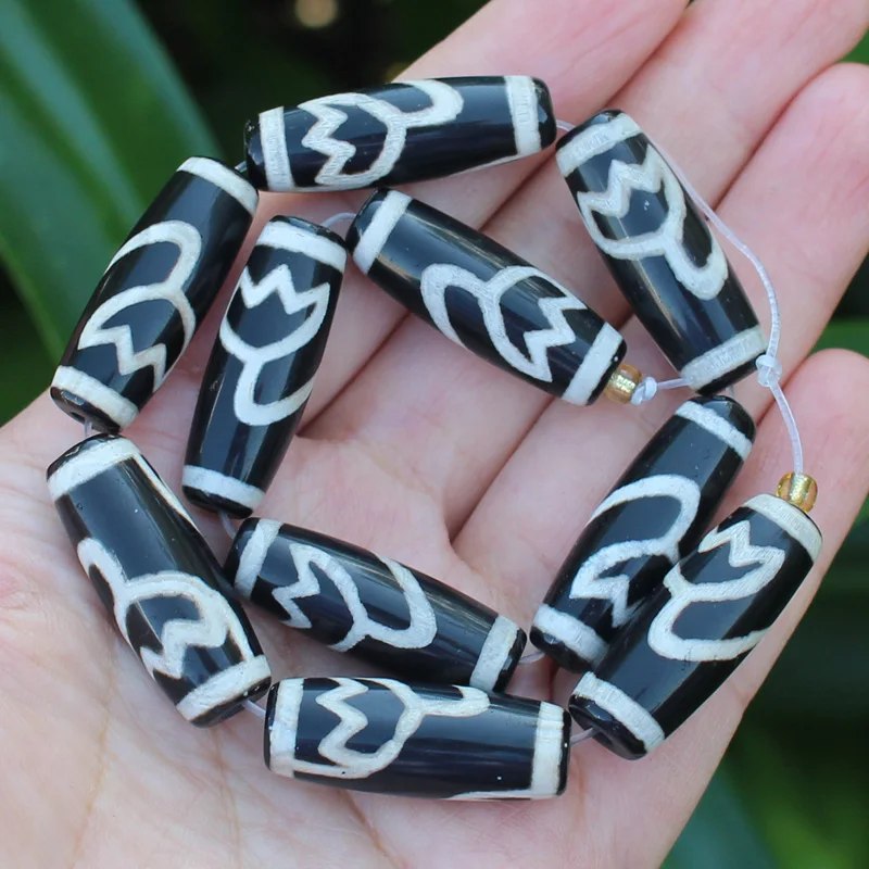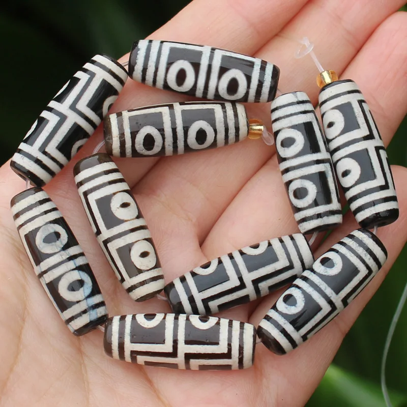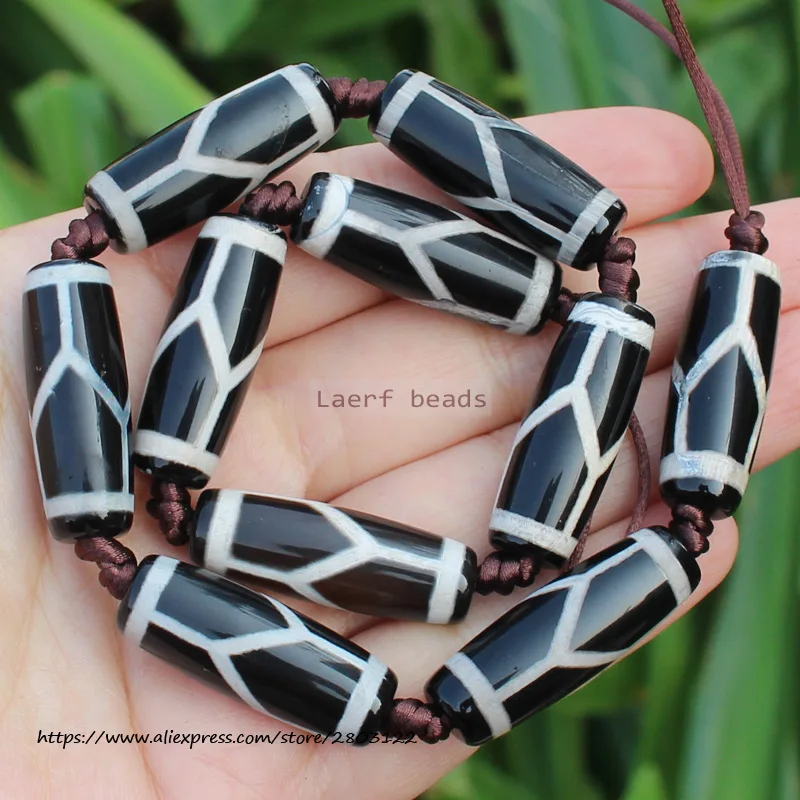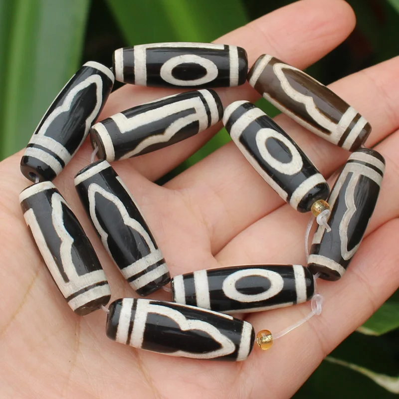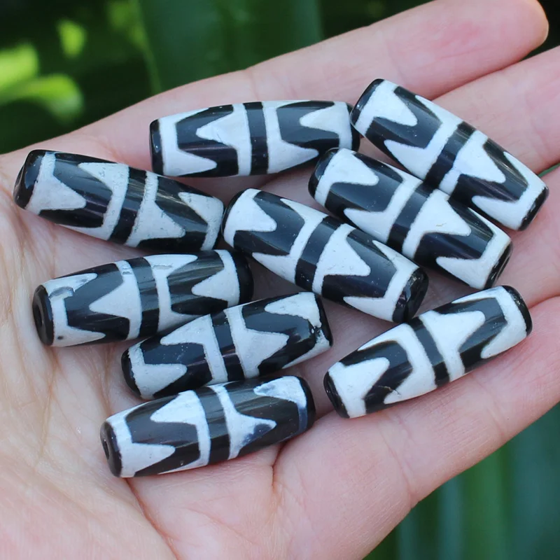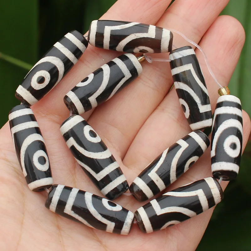 Бусины овальные дзи из агата, 10-12x28-30 мм, 6 шт.