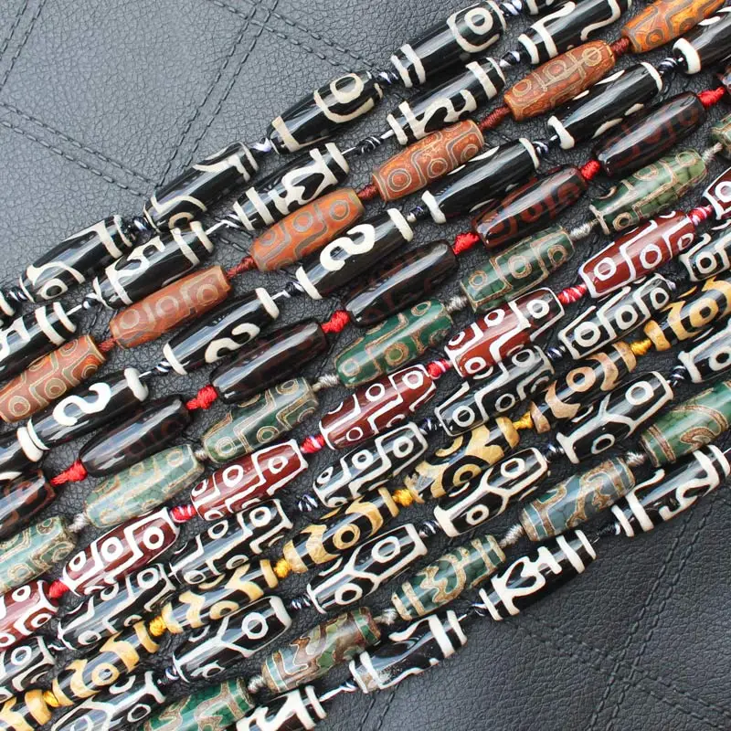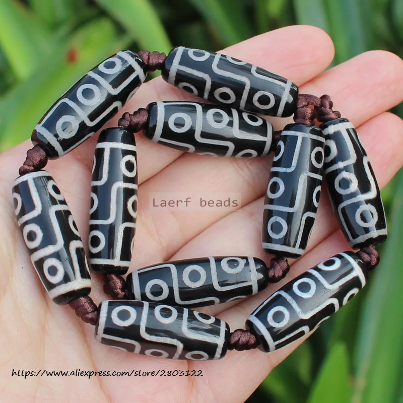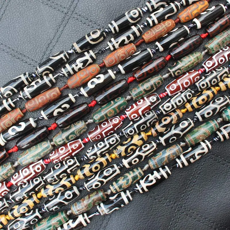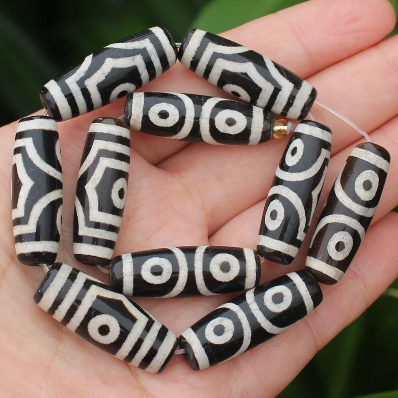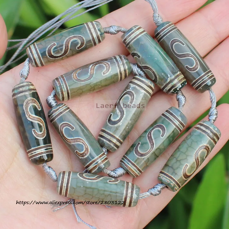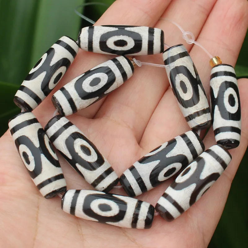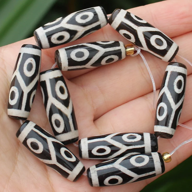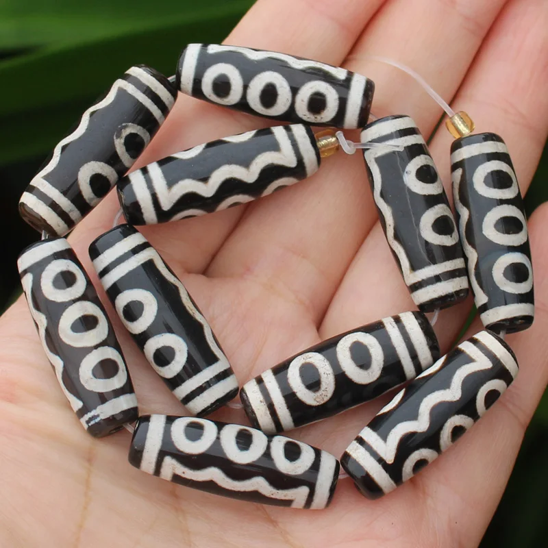 Бусины овальные дзи из агата, 10-12x28-30 мм, 6 шт.