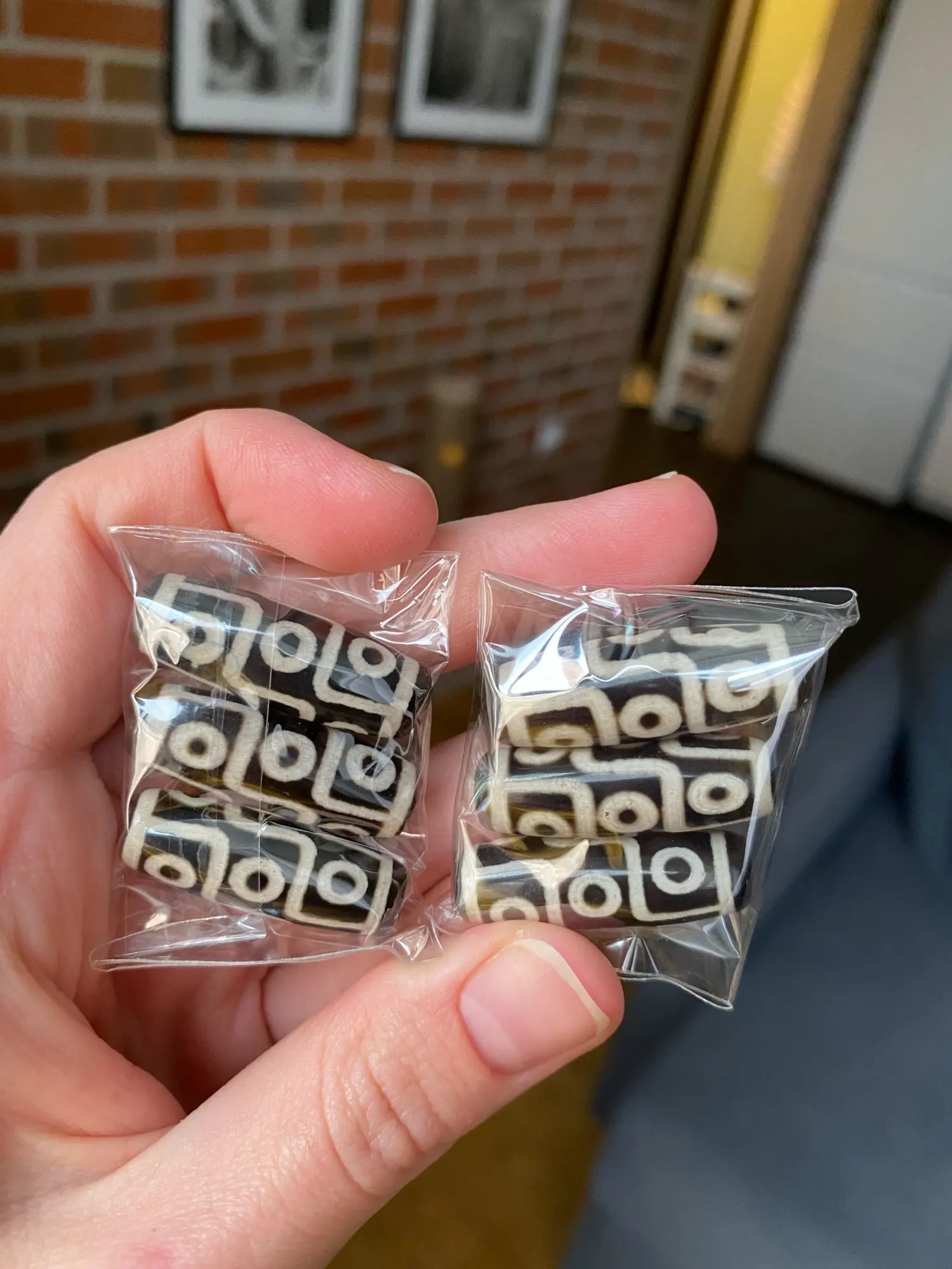Бусины просто шикарные! Все целые, выполнены очень качественно. Рисунок точный. Цвет более коричневый, чем на фото: камера передаёт цвет больше в зелёную сторону, но это не критично. Чувствуется натуральный камень. Пришли очень быстро: меньше двух недель до Владивостока. Продавцу огромное спасибо!❤️ Буду заказывать ещё и другие Дзи бусины. Всем советую!
