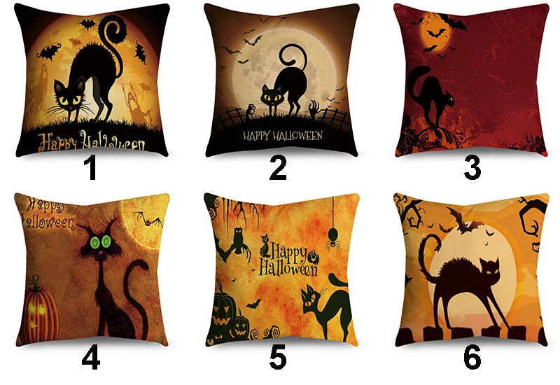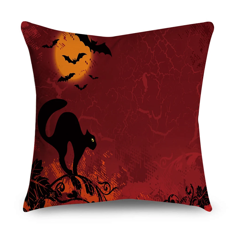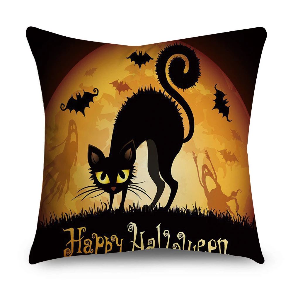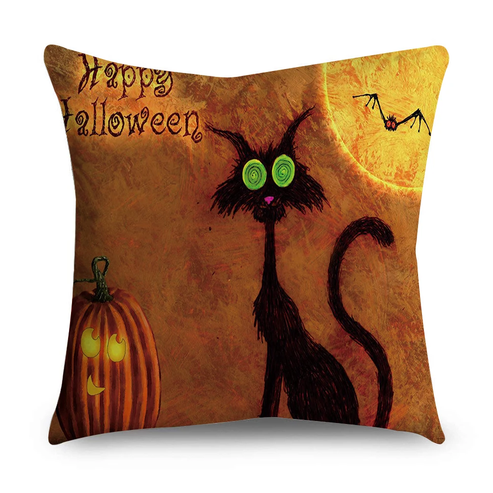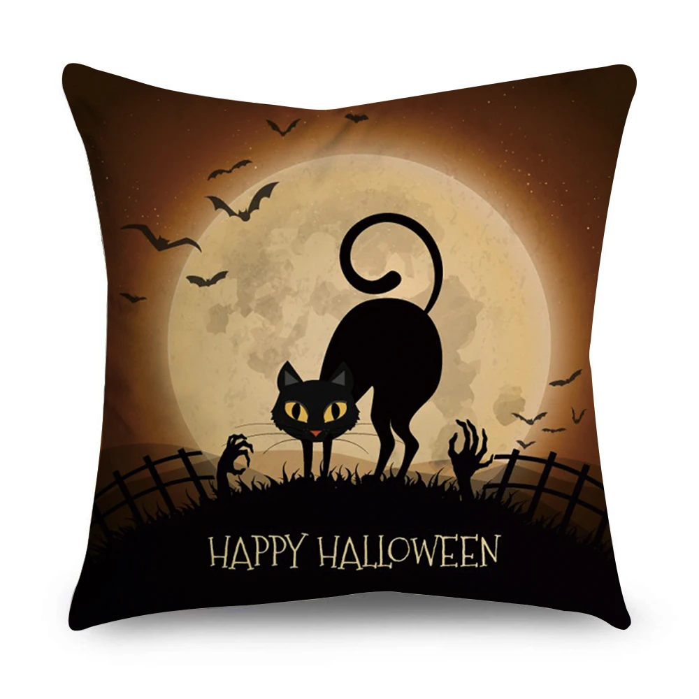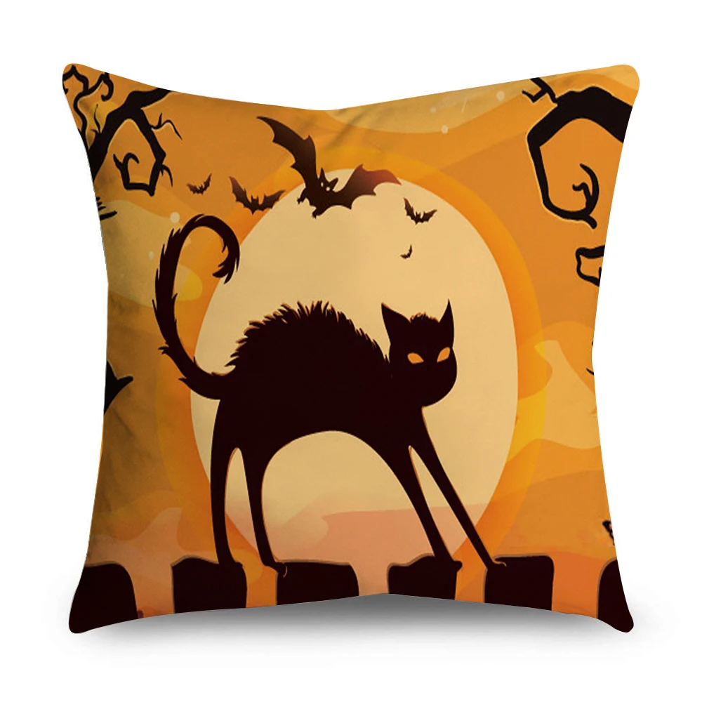 Декоративный 45x45 см чехол для подушки с изображением животных для Хэллоуина кота, полиэстеровый геометрический чехол для украшения дома, дивана, стула, подушки