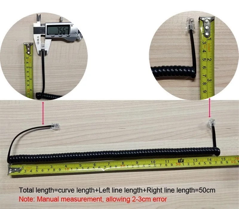 Длина кривой телефонного звонка составляет около 50 ~ 60 см в нормальном состоянии, который на 20-30 см длиннее обычного телефонного шнура, И максимальная длина нарисованной прямой линии может достигать 3 метров.