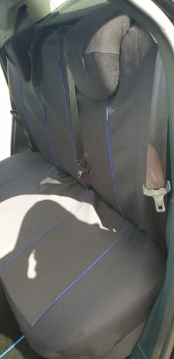 In de achterbank Geen gaten in voor de gordel/hoofdsteun verder wel oke