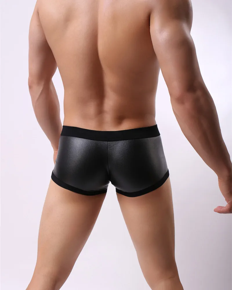 2018 брендовые сексуальные мужские боксеры Brave person из искусственной кожи, мужское нижнее белье, мужские трусы с выпуклым гульфиком, шорты-боксеры, нижнее белье