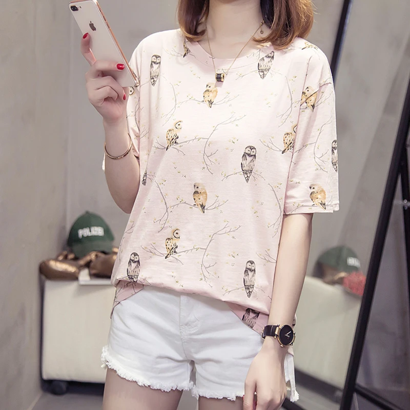 Женские хлопковые футболки, Женские повседневные топы размера плюс, футболки большого размера с круглым вырезом и принтом, новая летняя свободная футболка с полурукавами, 2021