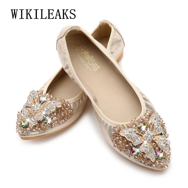 Туфли женские складные, балетки, заостренный носок, со стразами, бе...