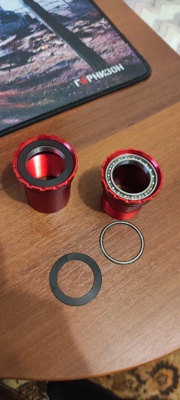 Не совсем подходит для шатунов gossamer с длиной вала ~85мм, пришлось удалять пыльники каретки и оставить только родные с системы Когда затягиваешь прижимной болт до нужного значения, появляется сопротивление при кручении системы Паходит, но лучше бы взял родную каретку fsa