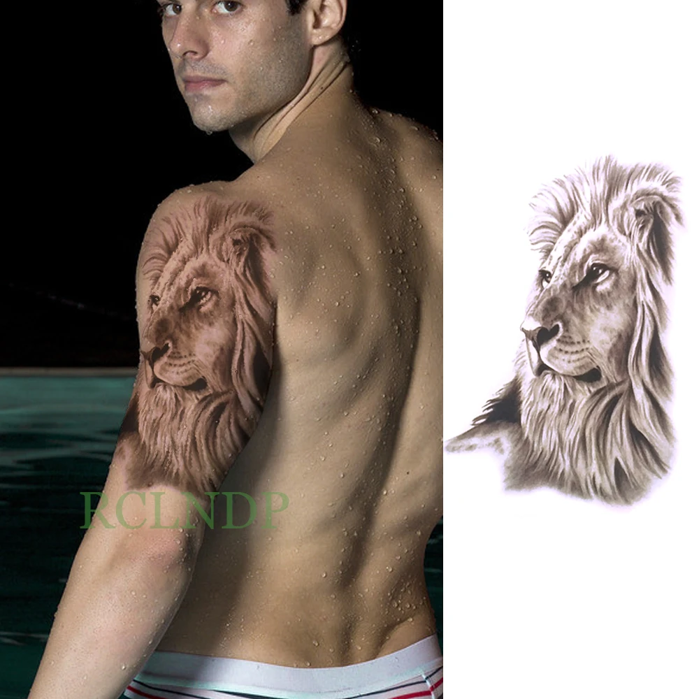 Водостойкая Временная татуировочная наклейка льва, поддельная татуировка, флэш-тату, задняя нога, рука, грудь, стопа, большой размер, боди-арт для женщин, мужчин и девочек
