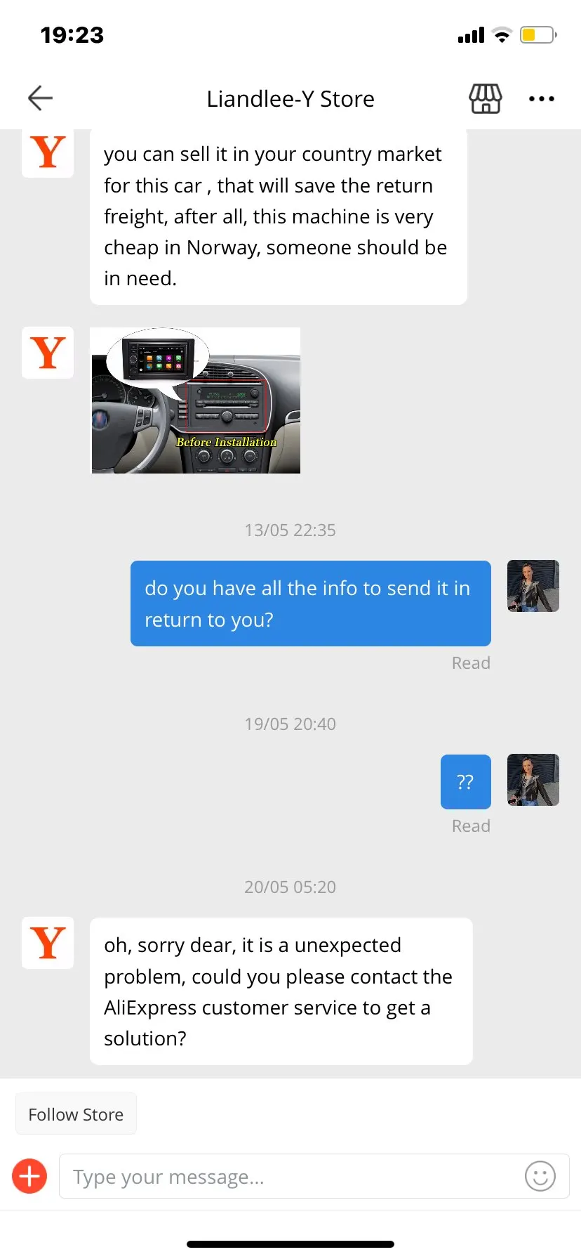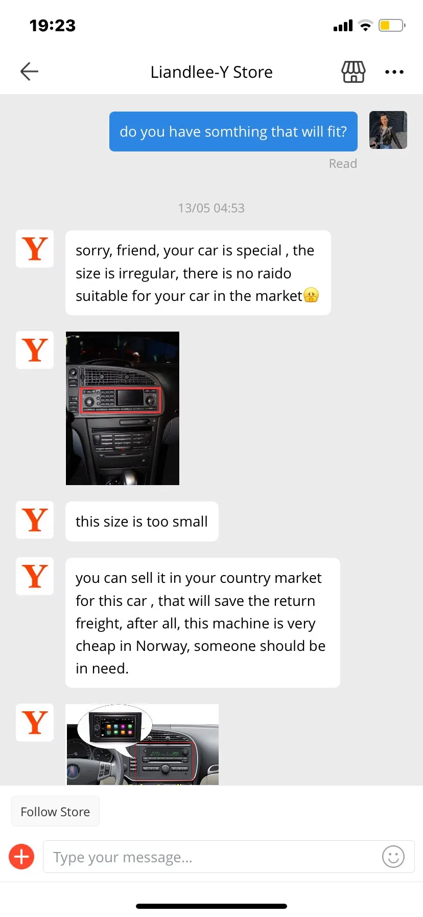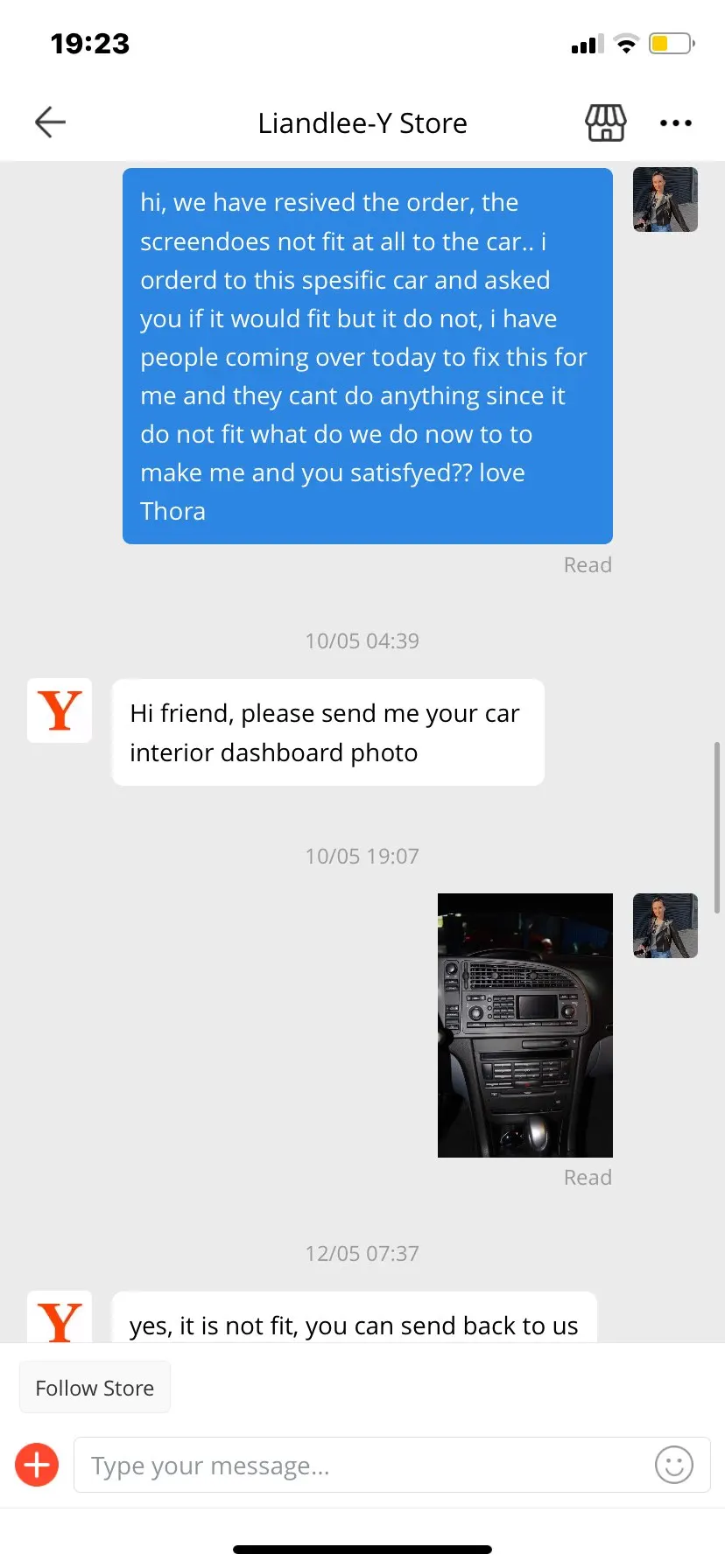 Hi! I orderd this spesific one for my car, the store did nort have it in stock so she sendt me something alike askt her if it would spesificly fit to my car type with all my card info, she said yes it would fit! It did not. It was totaly wrong. She was nice at first but when i got in tutch to tell about that it was the wrong one she started to ignore me, does not replay to any of my messinges, and does not gives me any option to send it back ang getting my money back! Do not shop with this company! Unrilabe, ignoring and disappointment! Still waiting for replay weeks later and stuck with a audio/screen that does not fit!