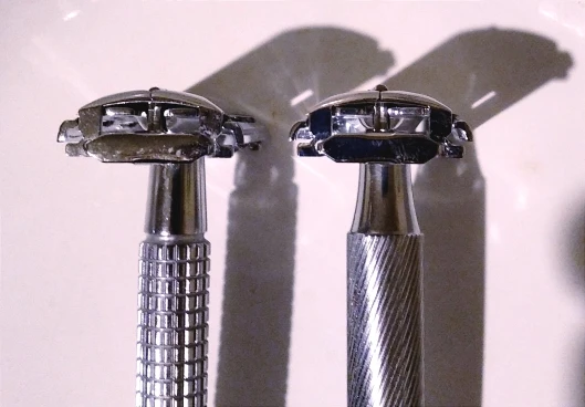 Данный бритвенный станок это хорошо знакомый Weishi 9306 FL, но с другой ручкой. Сам станок выполнен очень добротно из латуни, новая ручка тоже удобная и на этом все его плюсы заканчиваются. Бреет он точно также, как и модель 9306FL, то есть он очень мягкий и для безупречно гладкого бритья нужны острые лезвия. Можно попробовать BIC chrome platinum или Euromax platinum coated. Индийские лезвия мне понравились больше - они очень комфортные, но в тоже время обеспечивают гладкое бритьё. Внешне он похож на Wilkinson, но как по бритью не знаю - другой станок у меня отсутствует. Также на фото хорошо видно торчащие боковые кромки лезвия. На других моделях бритвенных станков китайцы уже устранили этот недостаток.